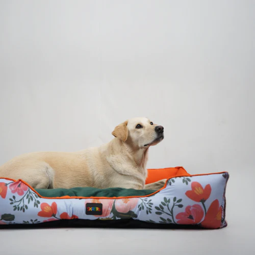 Skatrs Flower Meadow Bed for Dogs & Cats (Orange/Green)