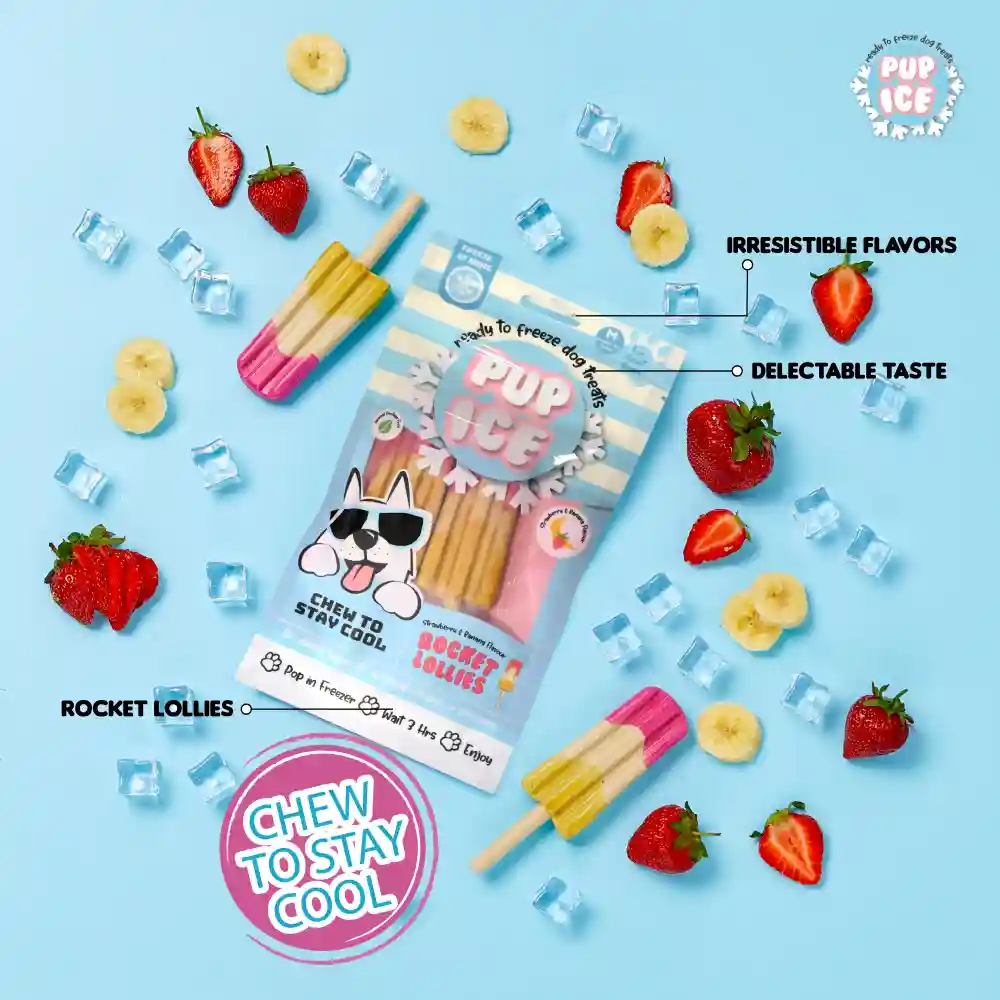 Pup Ice Meat Free Strawberry and Banana Flavoured Rocket Lollies Dog Treat