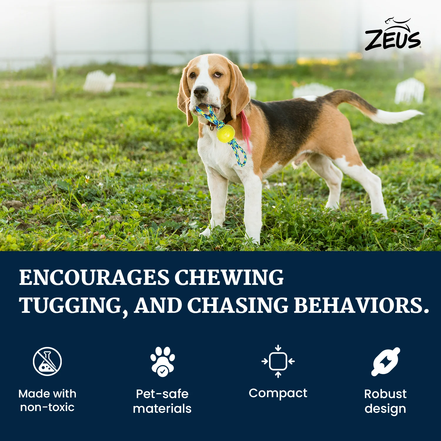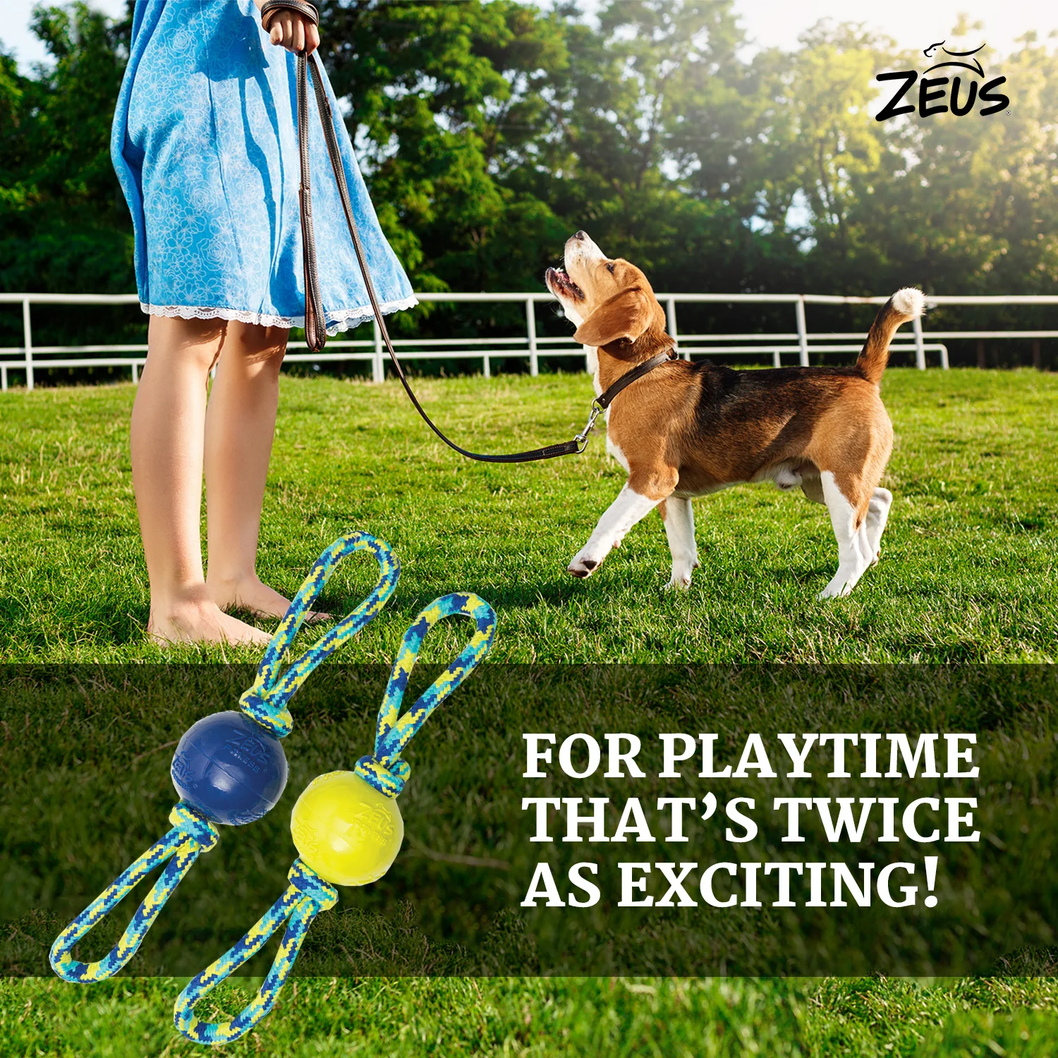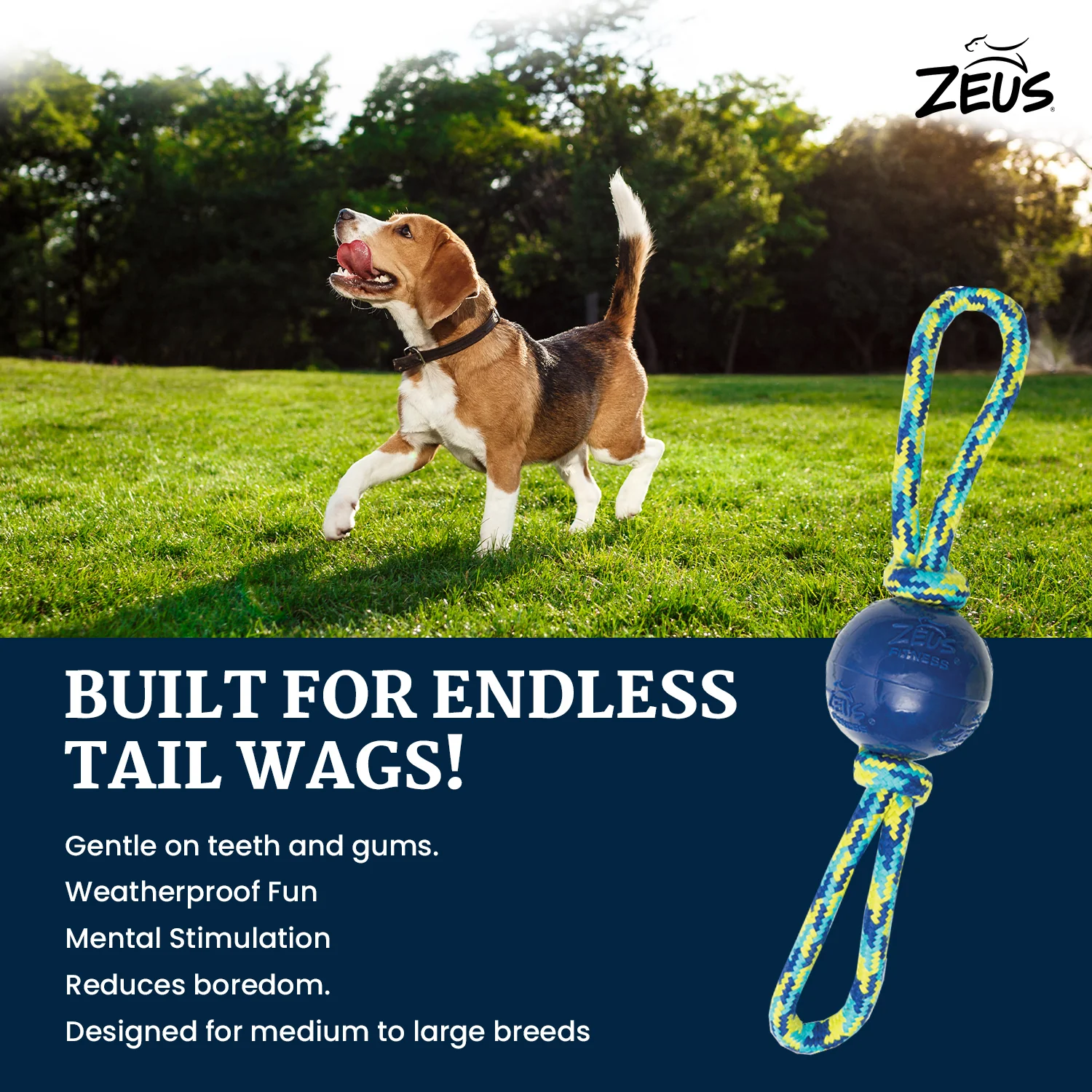 Zeus Rope Ball Tug with Hand Loops Toy for Dogs (Blue)