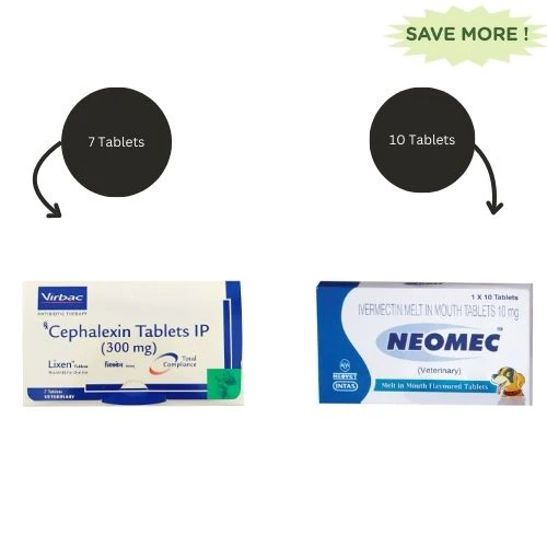 Virbac Lixen Palatab (Cephalexin) 300mg for Dogs (7 tablets) and Intas Neomec (Ivermectin) 10mg Tablets for Dogs Combo