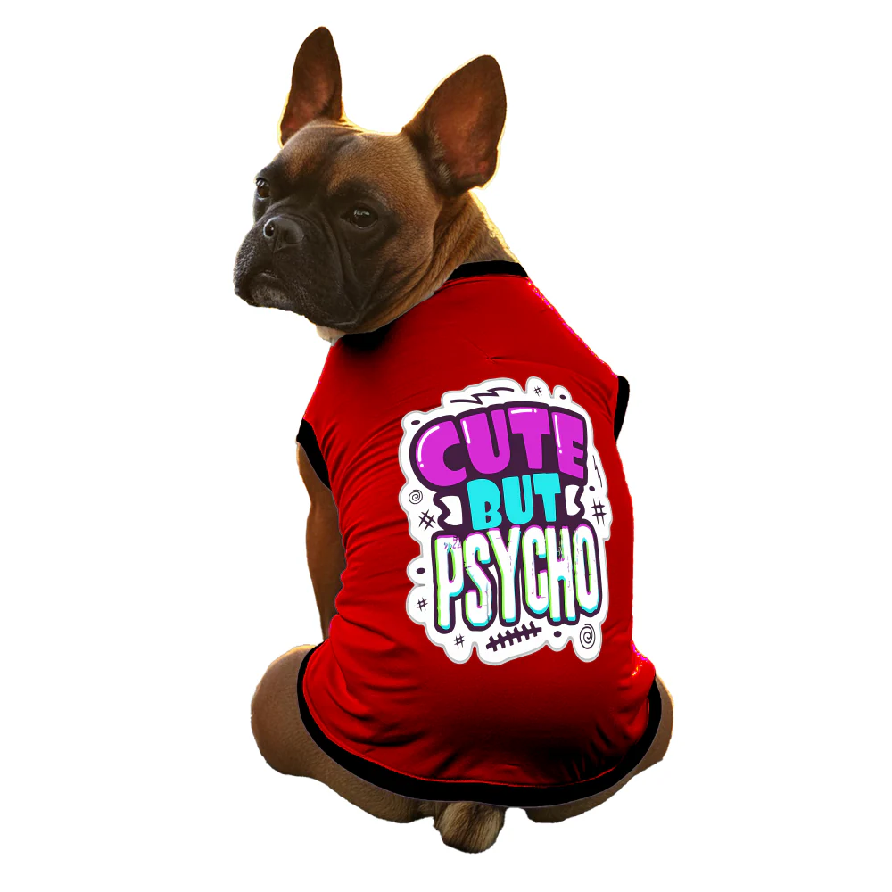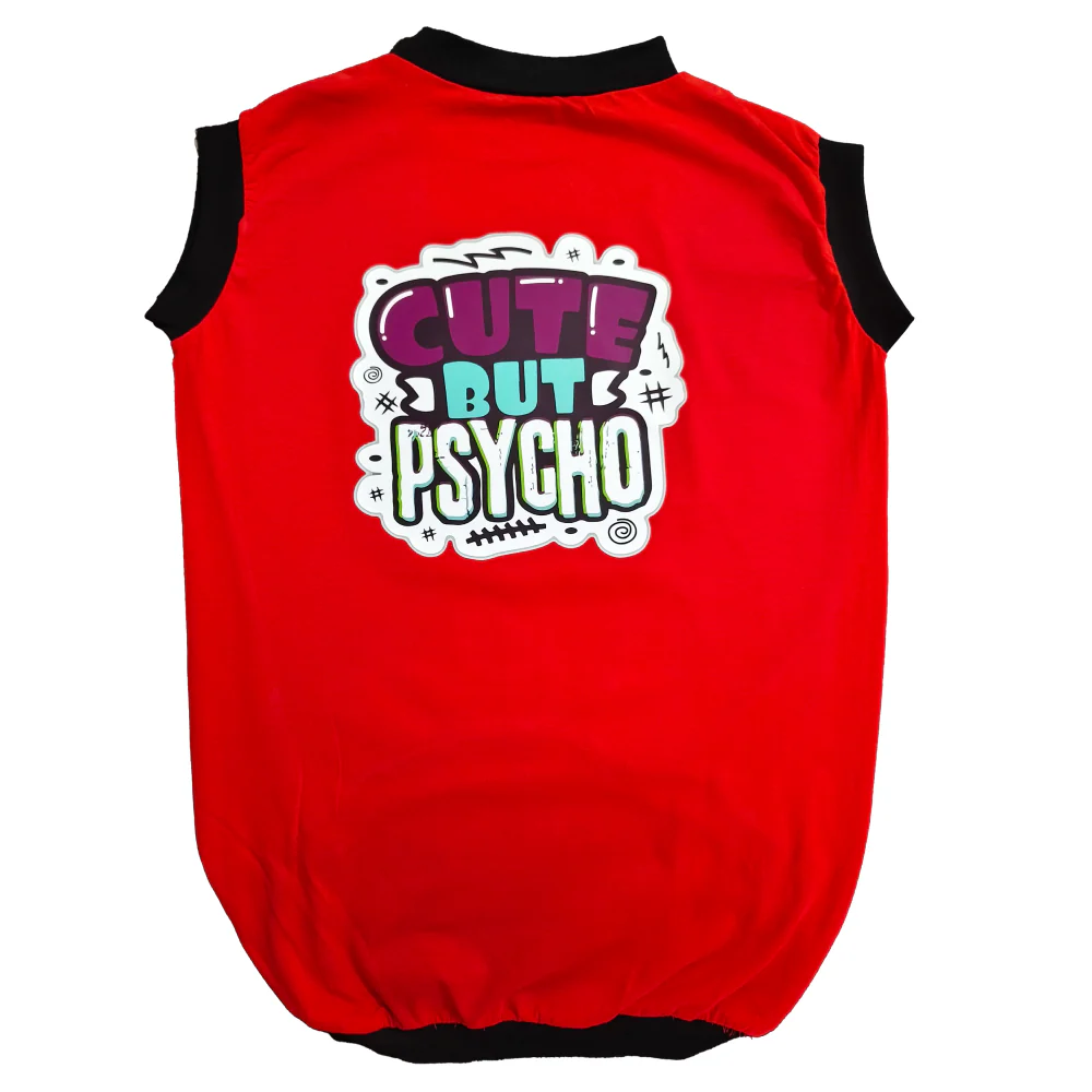 Cheeku Cute But Psycho Graphic Cotton T Shirt for Dogs and Cats (Red)