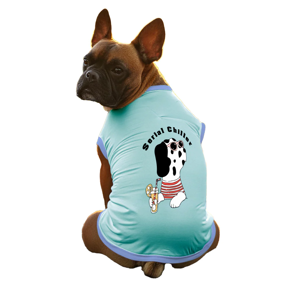 Cheeku Serial Chiller Graphic Cotton T Shirt for Dogs and Cats (Sky Blue)