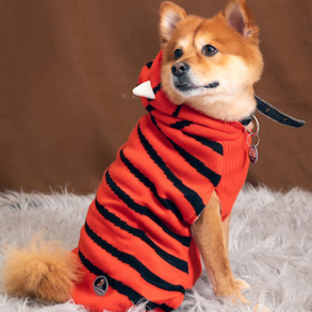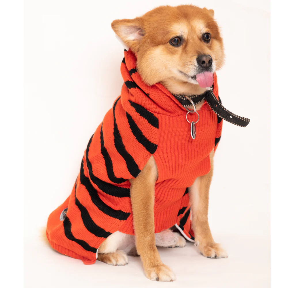 Petsnugs Tiger Knit Sweater for Dogs and Cats (Black & Orange)