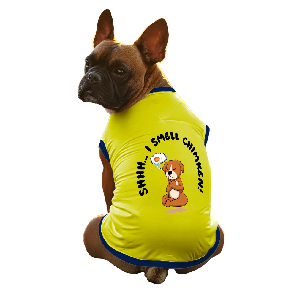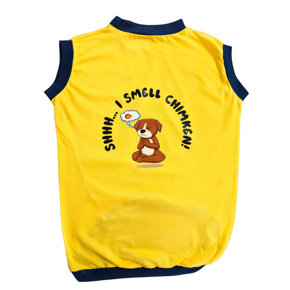 Cheeku I Smell Chimken Graphic Cotton T Shirt for Dogs and Cats (Primerose Yellow)