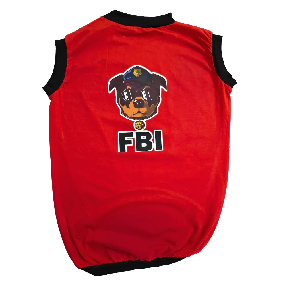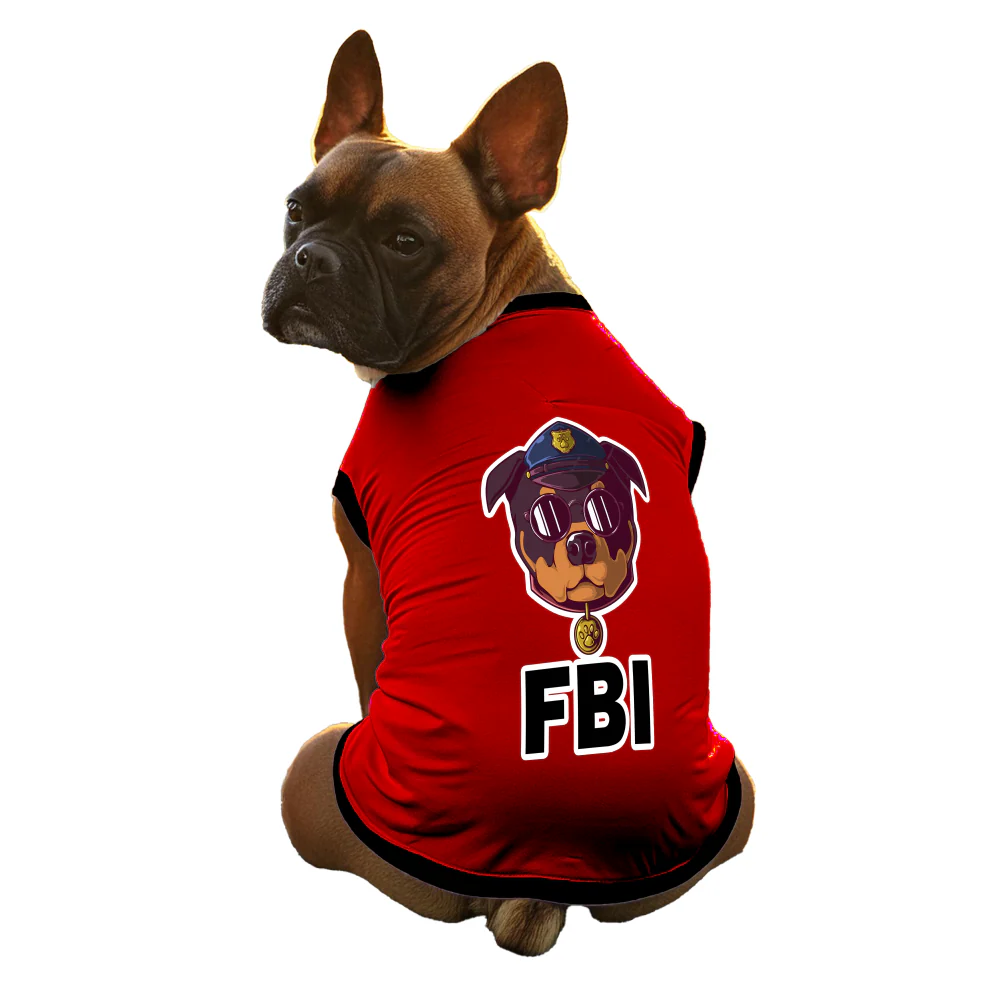 Cheeku FBI Graphic Cotton T Shirt for Dogs and Cats (Red)