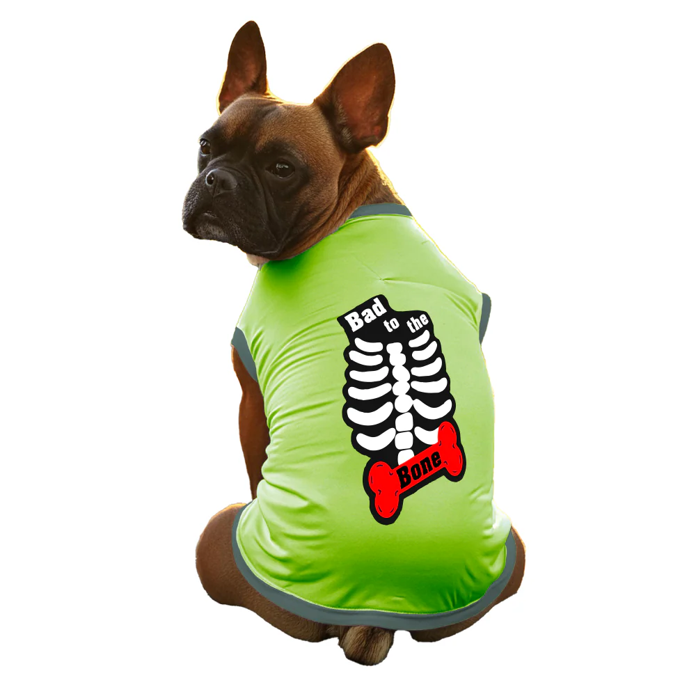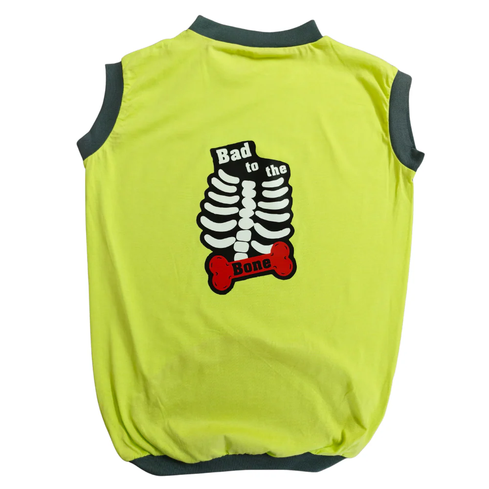 Cheeku Bad to The Bone Graphic Cotton T Shirt For Dogs and Cats (Sharp Green)