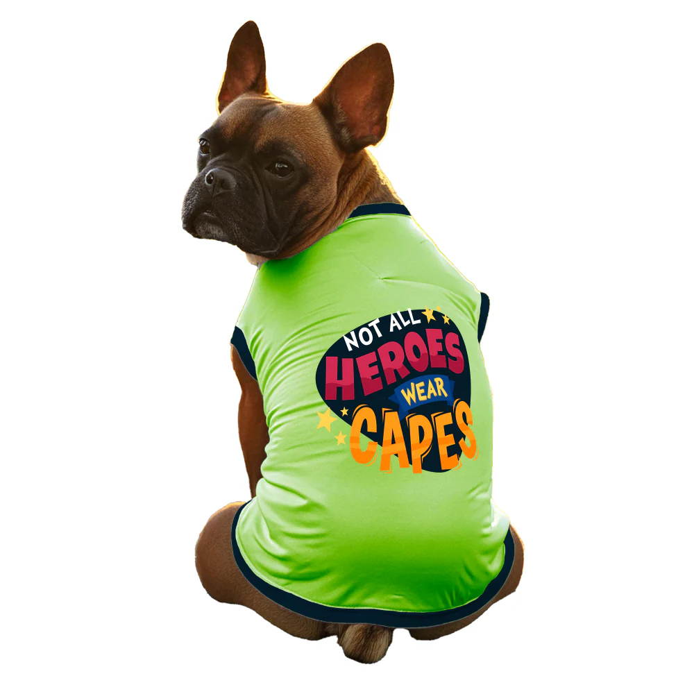 Cheeku Superhero Graphic Cotton T Shirt for Dogs and Cats (Sharp Green)