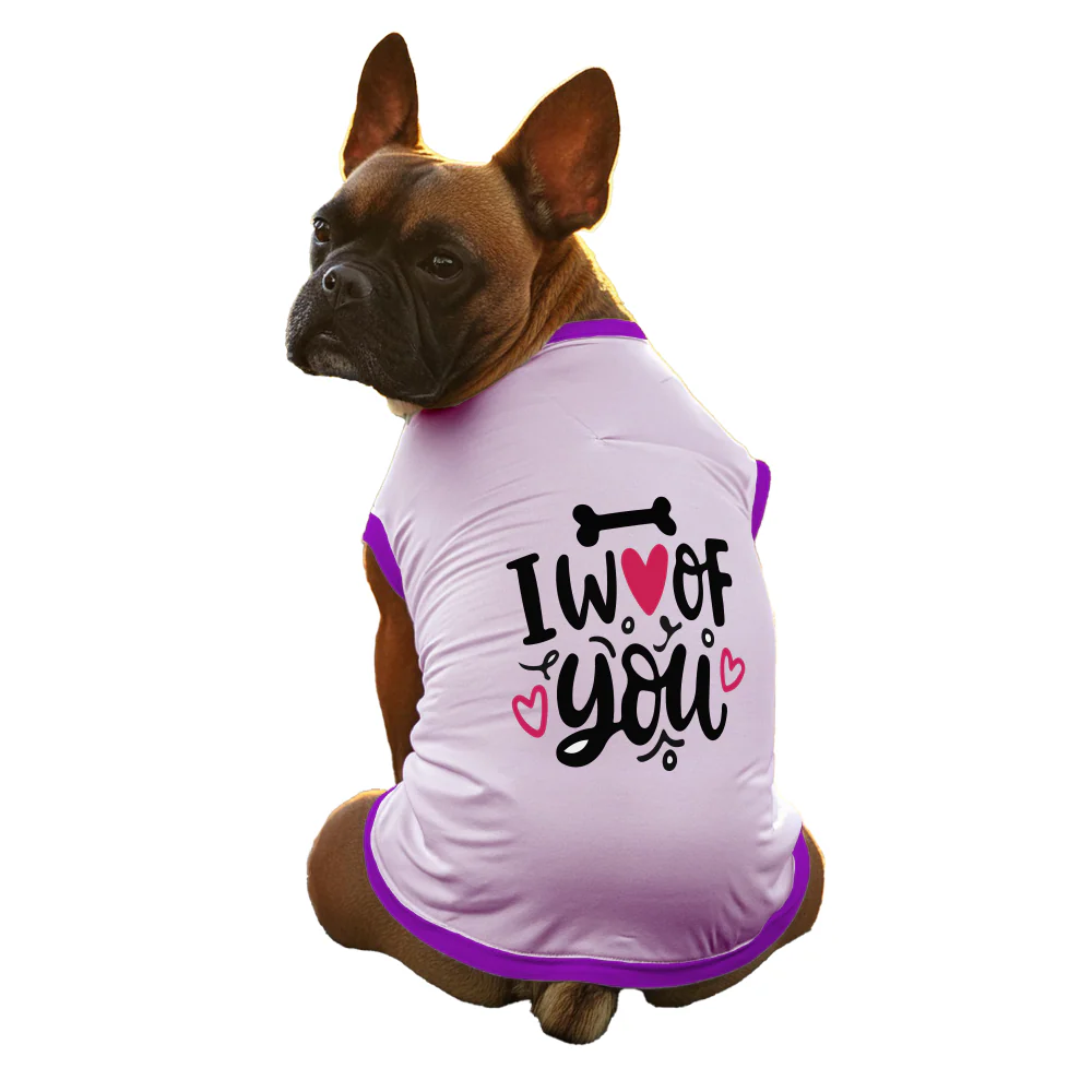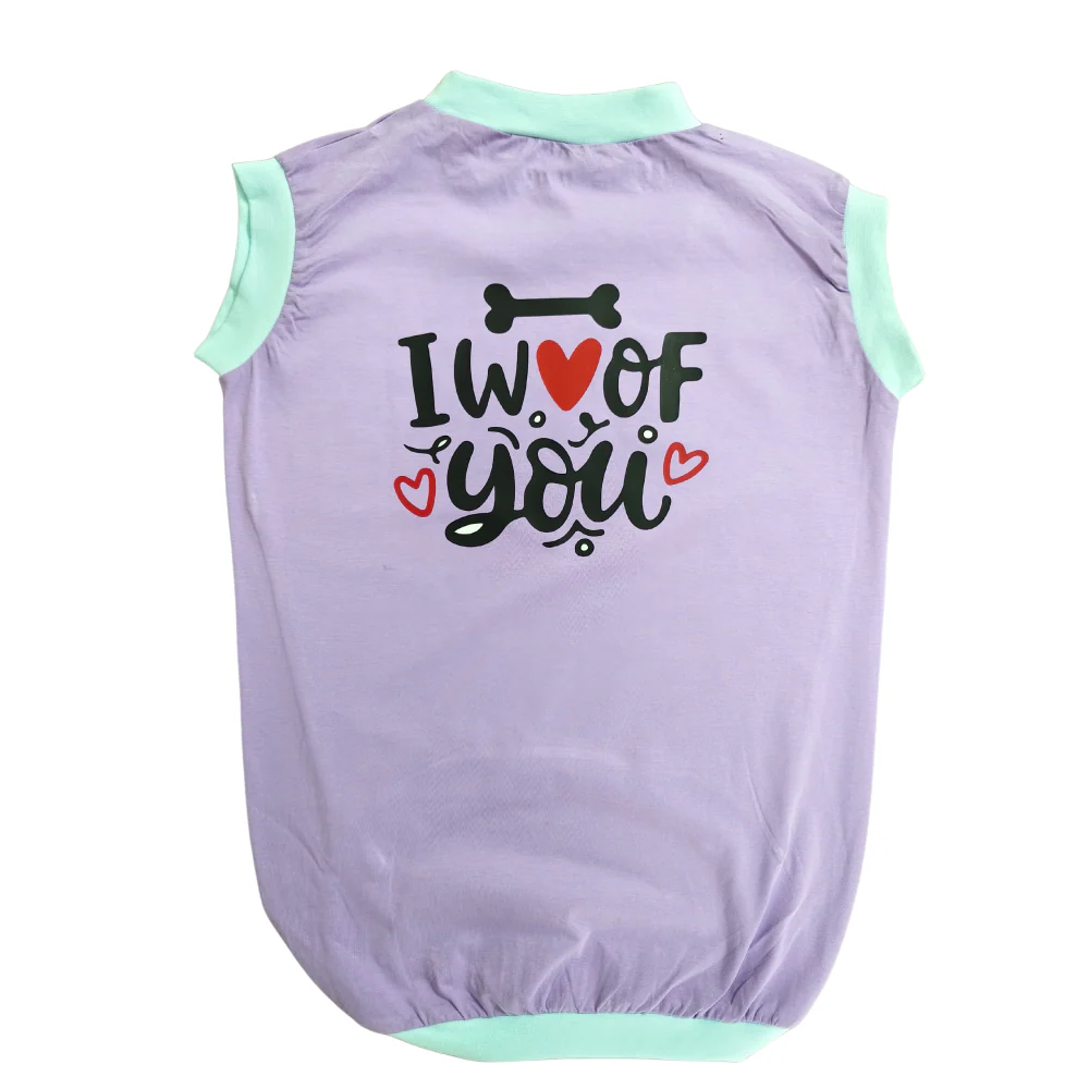 Cheeku I Woof You Graphic Cotton T Shirt for Dogs and Cats (Lavender)
