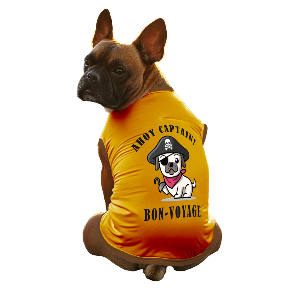 Cheeku Ahoy Captain Graphic Cotton T Shirt for Dogs and Cats (Orange)