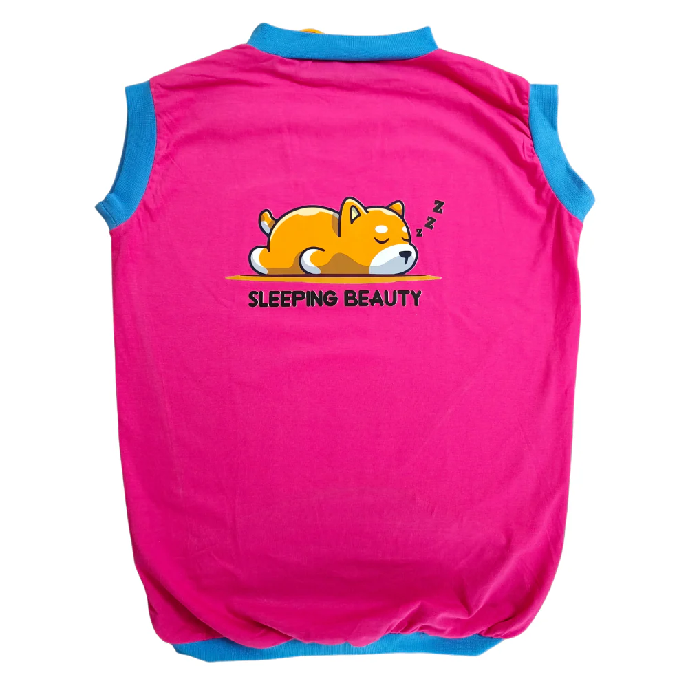 Cheeku Sleeping Beauty Graphic Cotton T Shirt for Dogs and Cats (Fuschia)