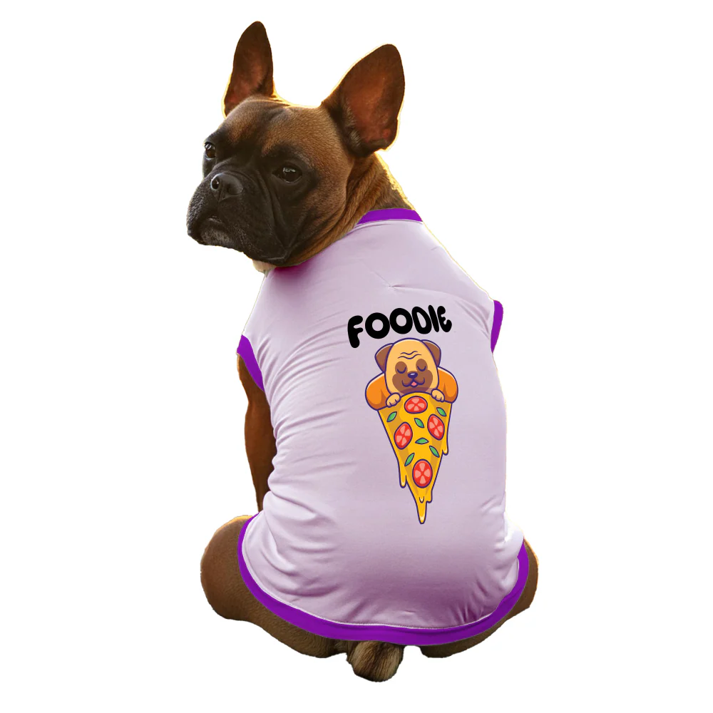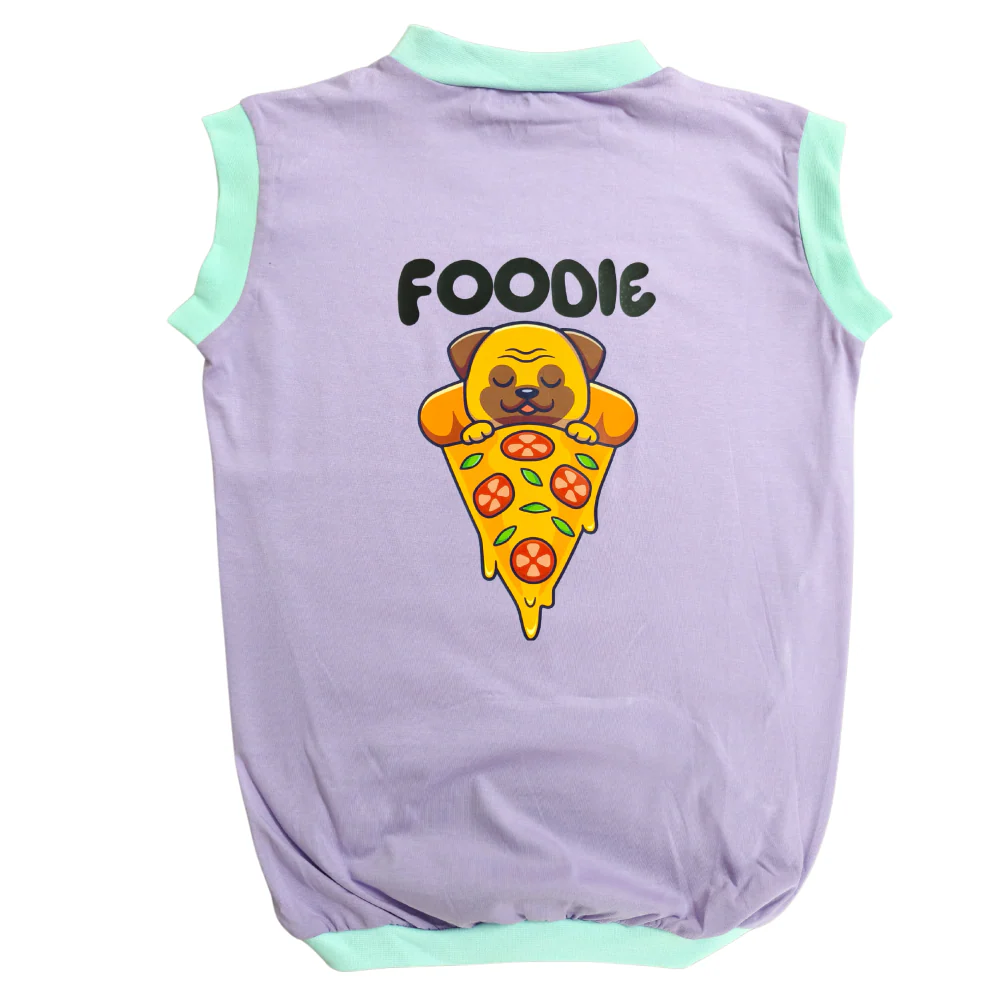 Cheeku Foodie Graphic Cotton T Shirt for Dogs and Cats (Lavender)