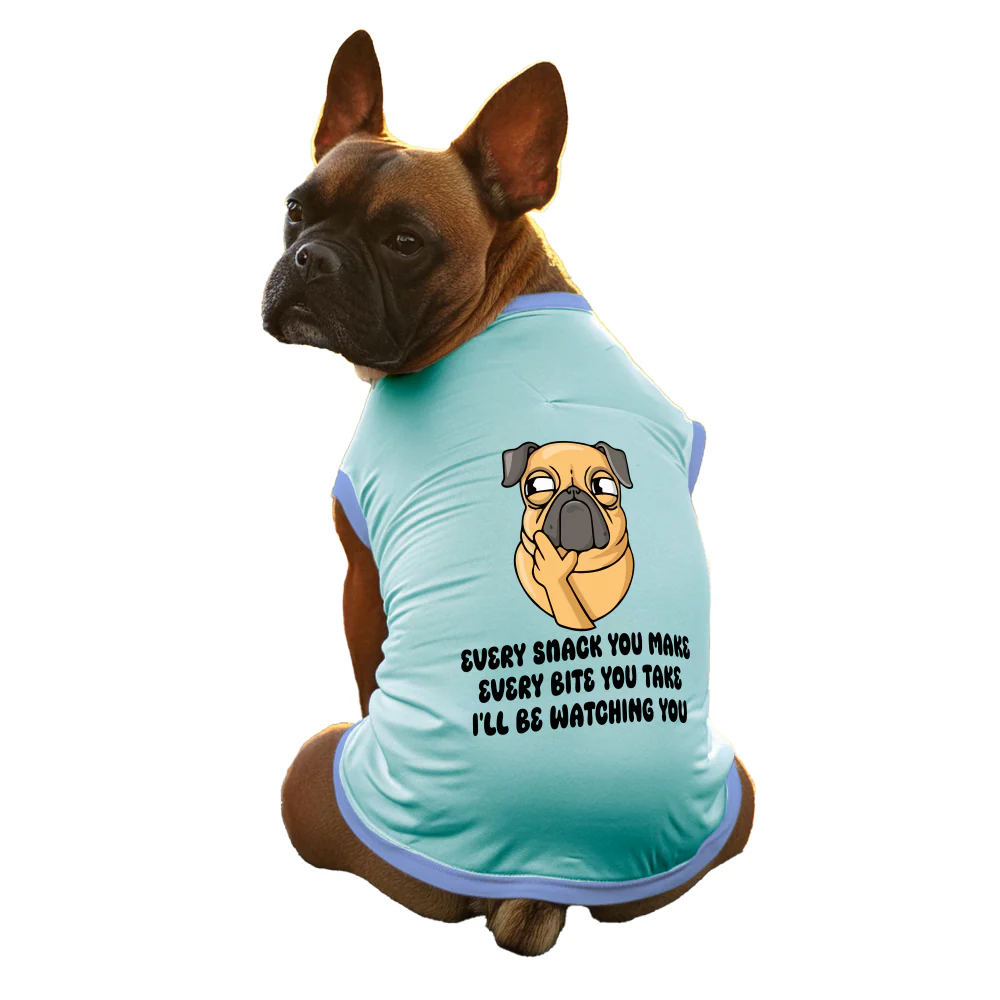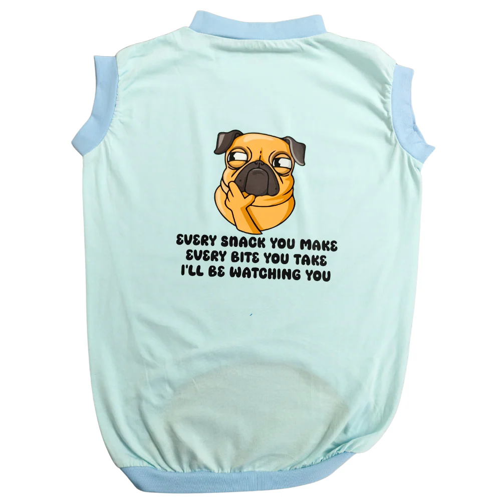 Cheeku I'll Be Watching You Graphic Cotton T Shirt for Dogs and Cats (Sky Blue)