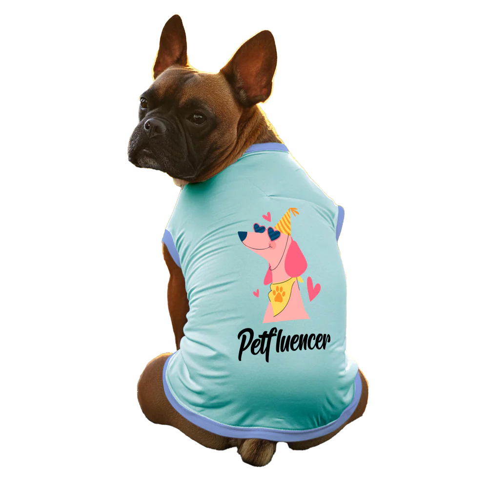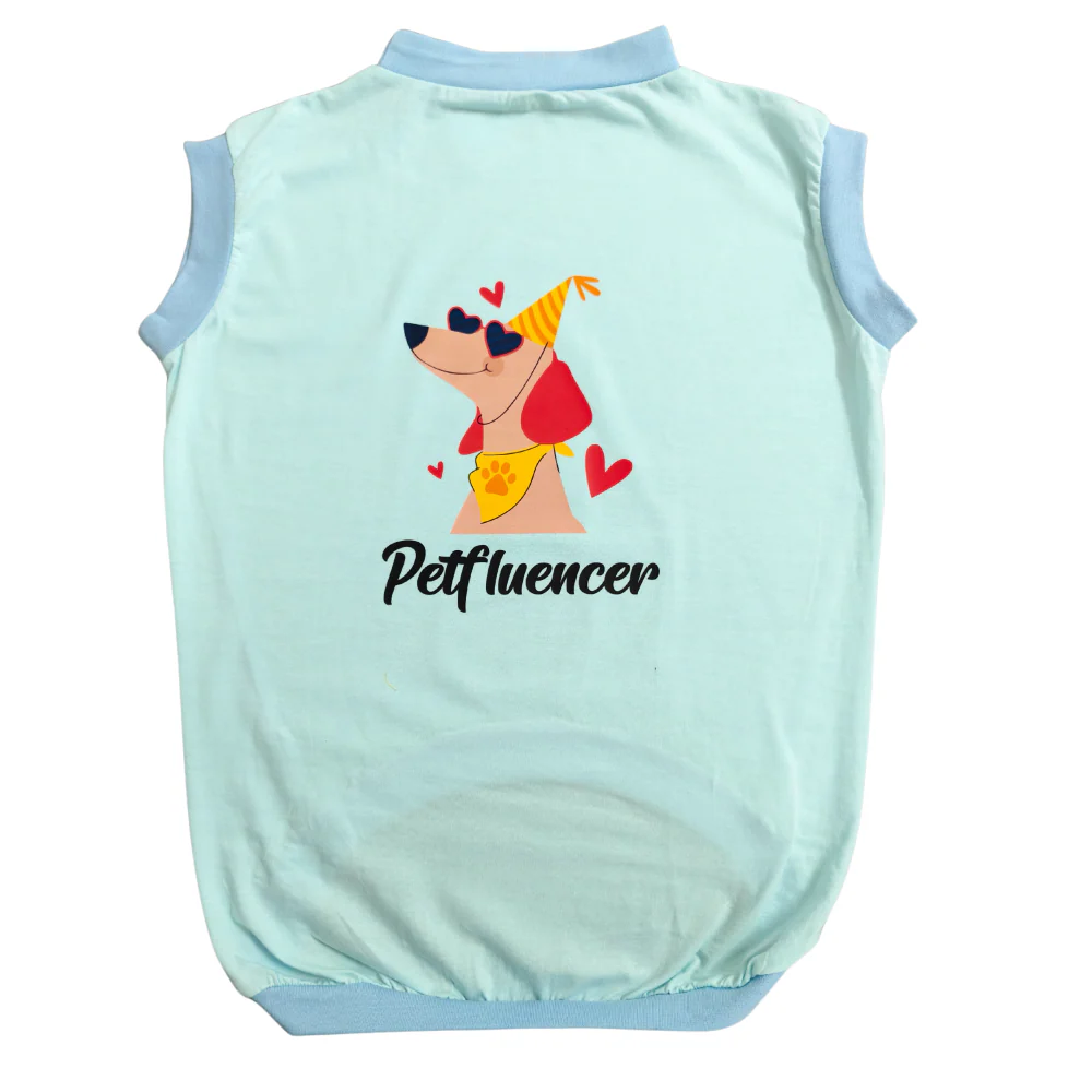 Cheeku Petfluencer Graphic Cotton T Shirt for Dogs and Cats (Sky Blue)