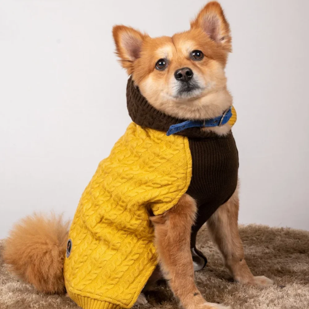 Petsnugs Cable Knit Sweater for Dogs and Cats (Brown/Mustard)