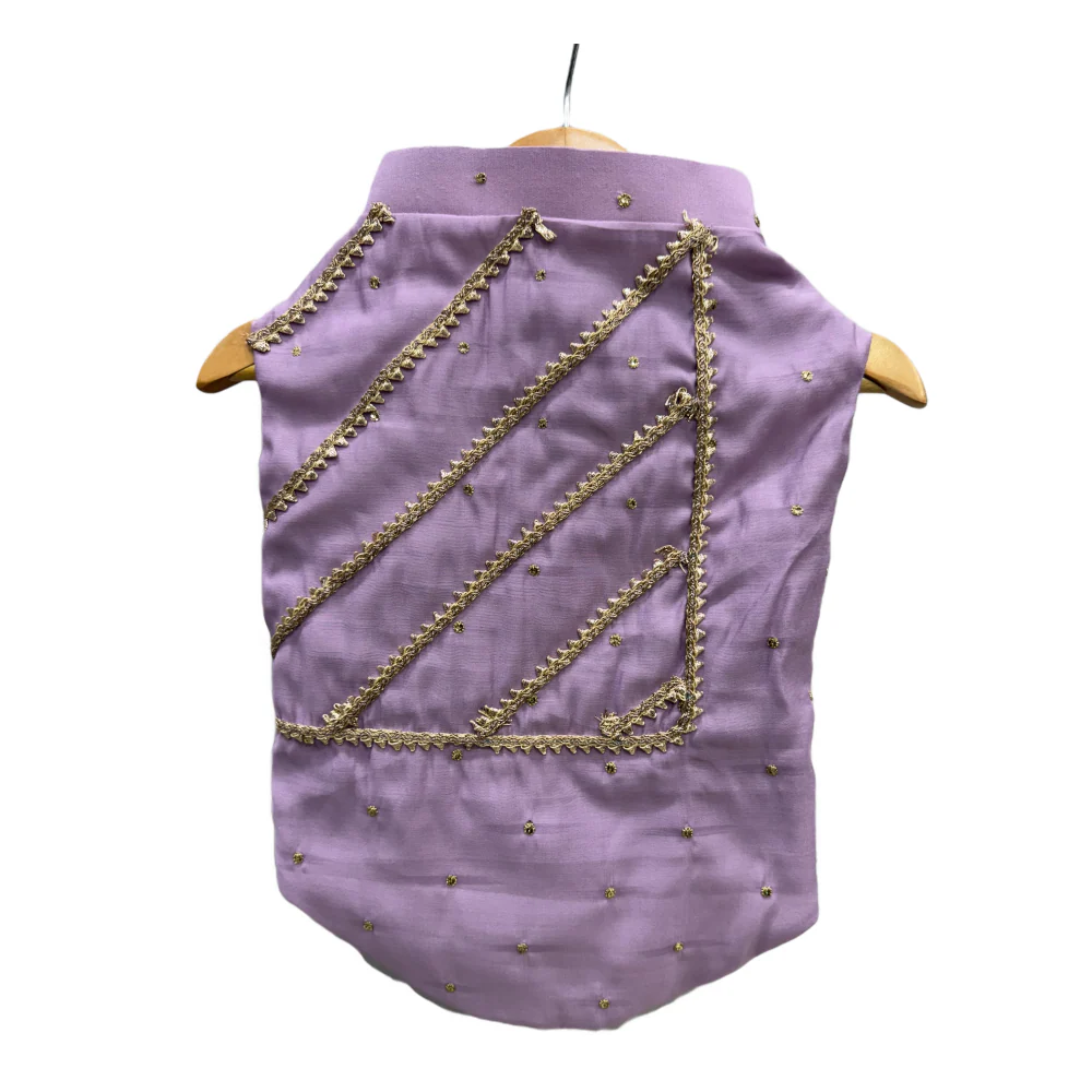 The Papaw Cartel Gota Patti Embroidered Sleeveless Sherwani for Dogs & Cats (Lilac)