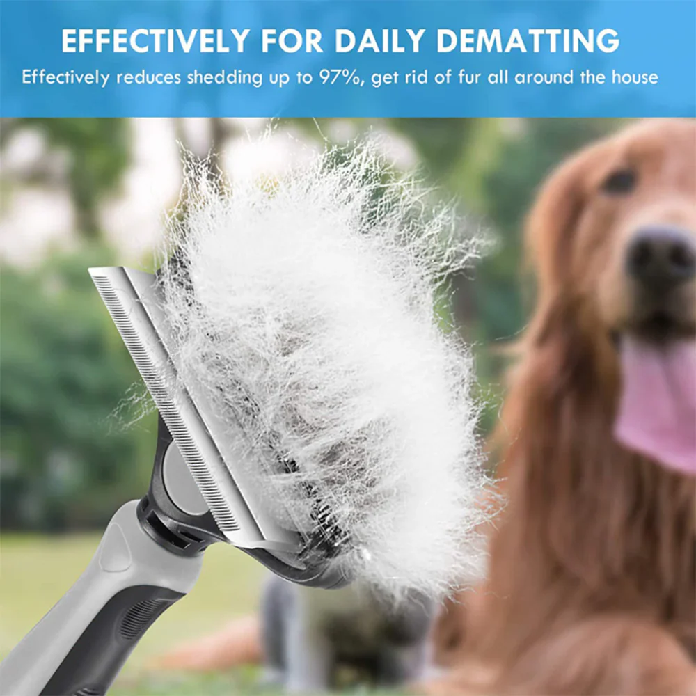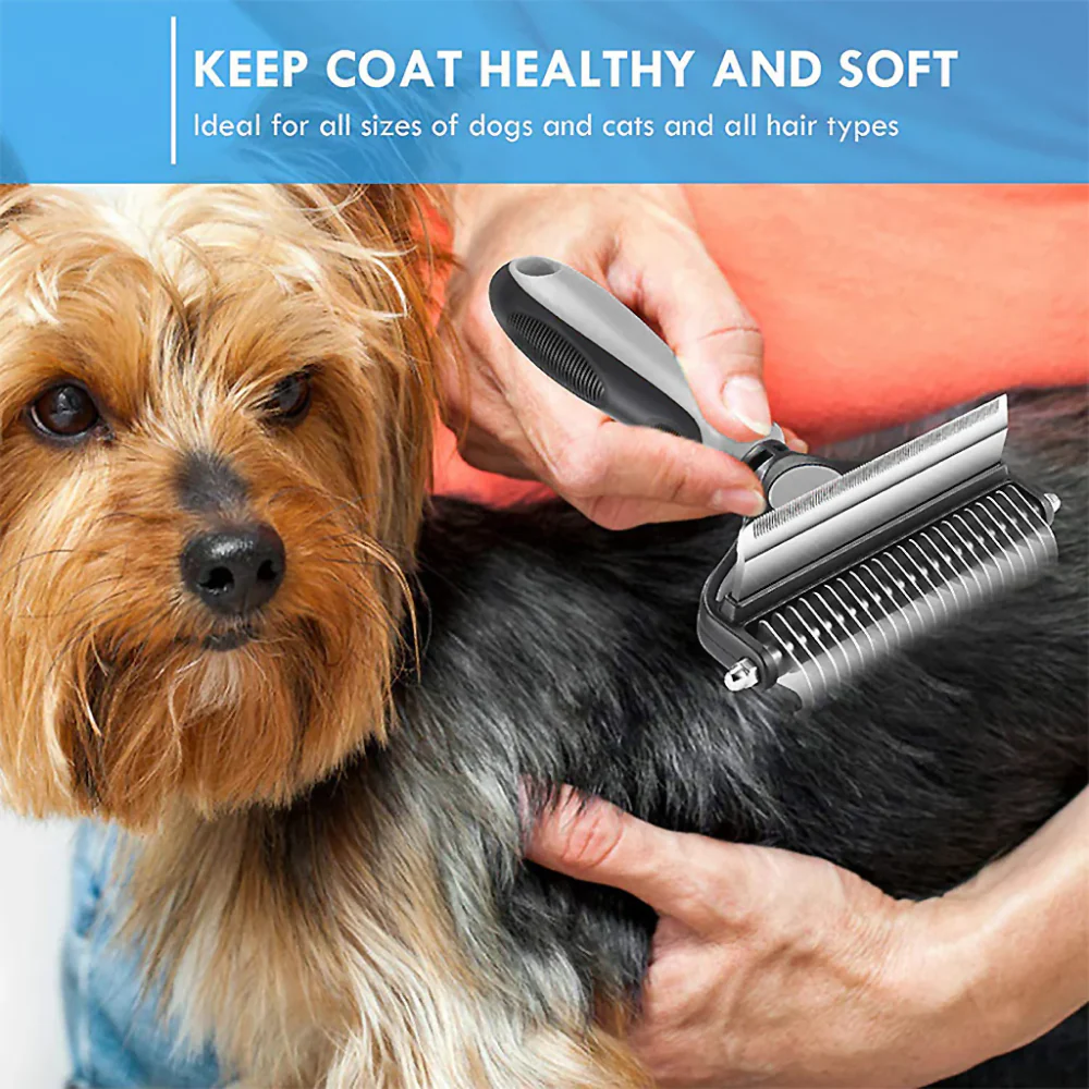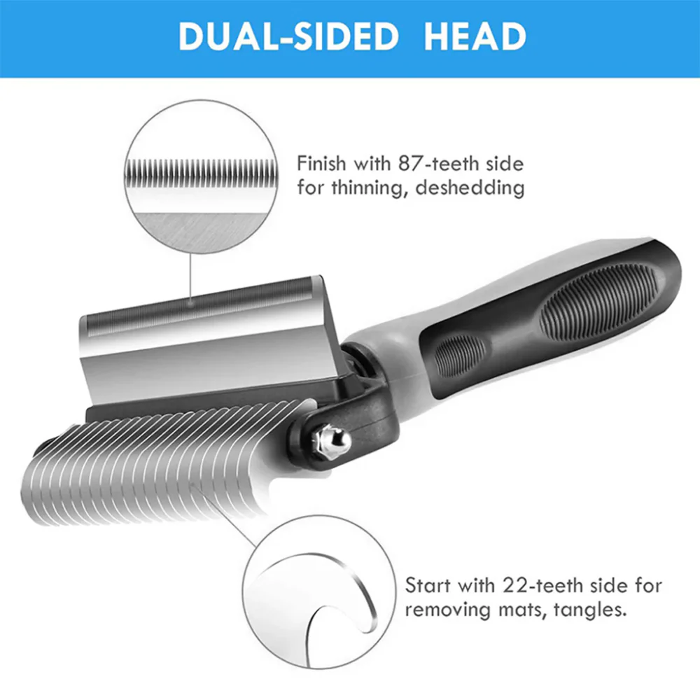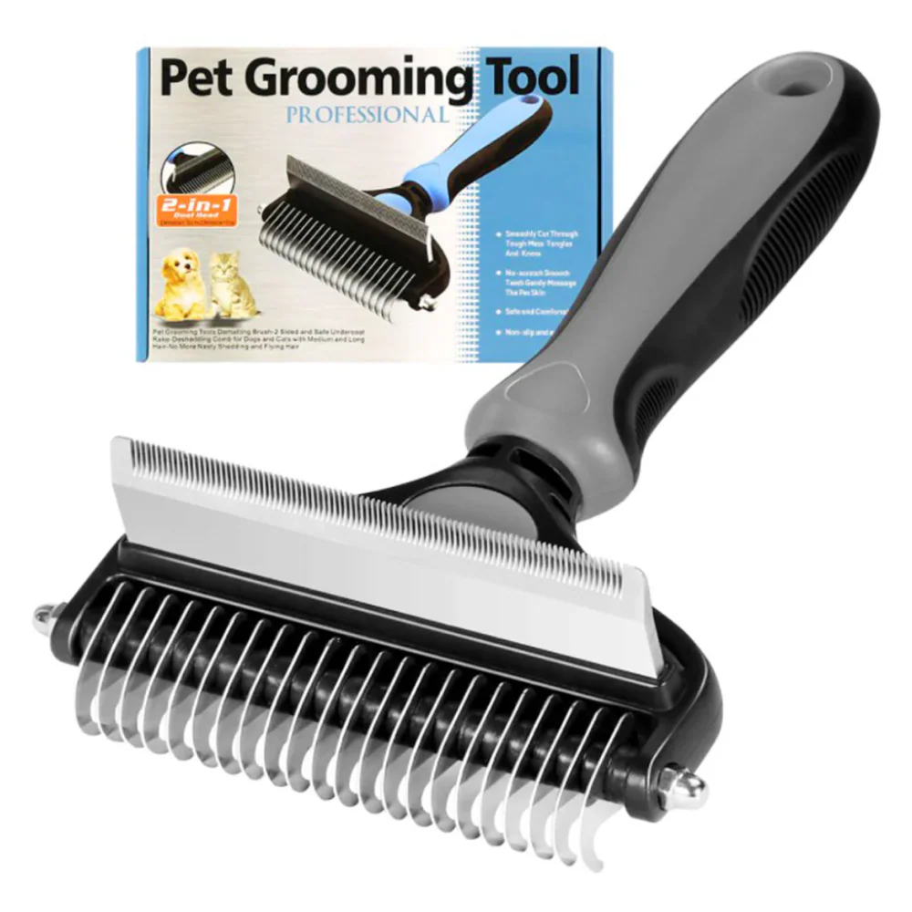 QPets 2 in 1 Deshedding and Dematting Tool for Dogs (Grey)