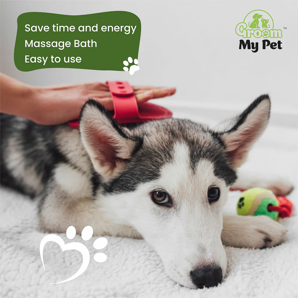 Groom My Pet Bathing & Grooming Hand Brush for Dogs and Cats (Red)