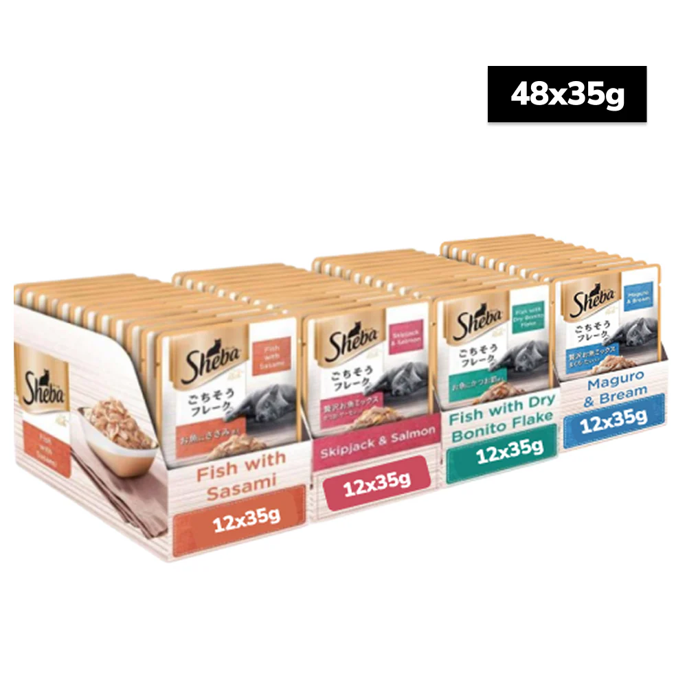Sheba Fish with Sasami, Dry Bonito Flake and Maguro & Bream Fish Mix Premium Cat Wet Food Combo