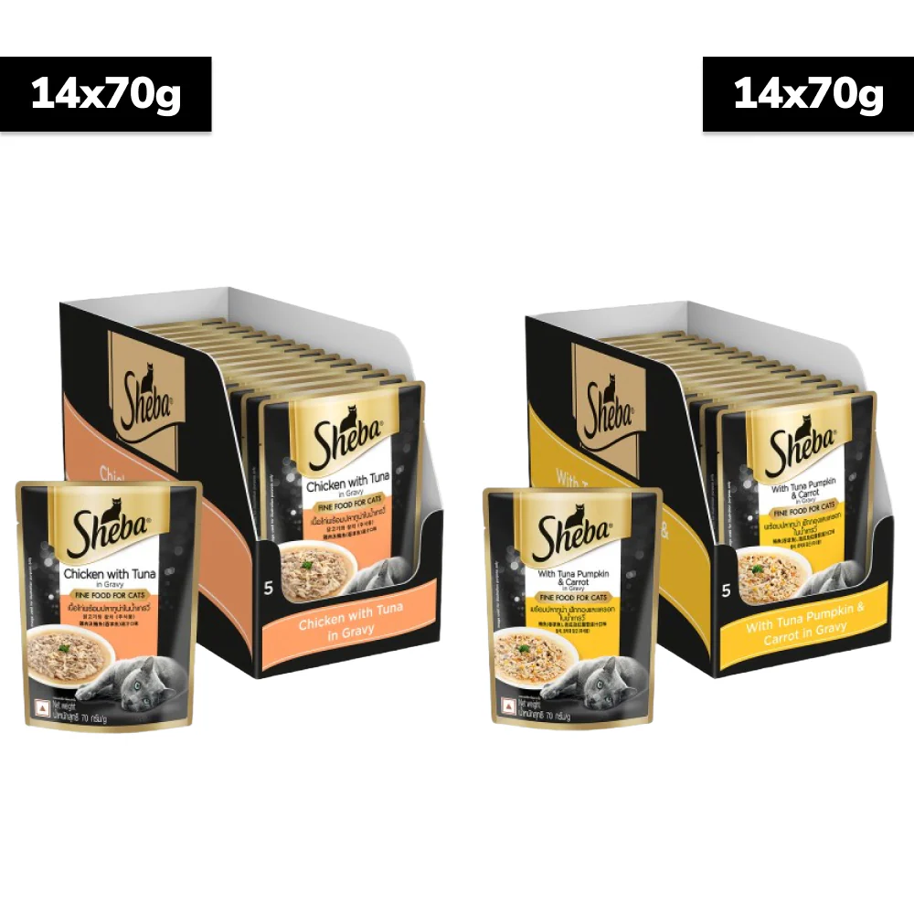 Sheba Tuna Pumpkin & Carrot In Gravy and Chicken With Tuna In Gravy Rich Premium Adult Fine Cat Wet Food Combo