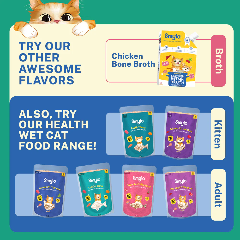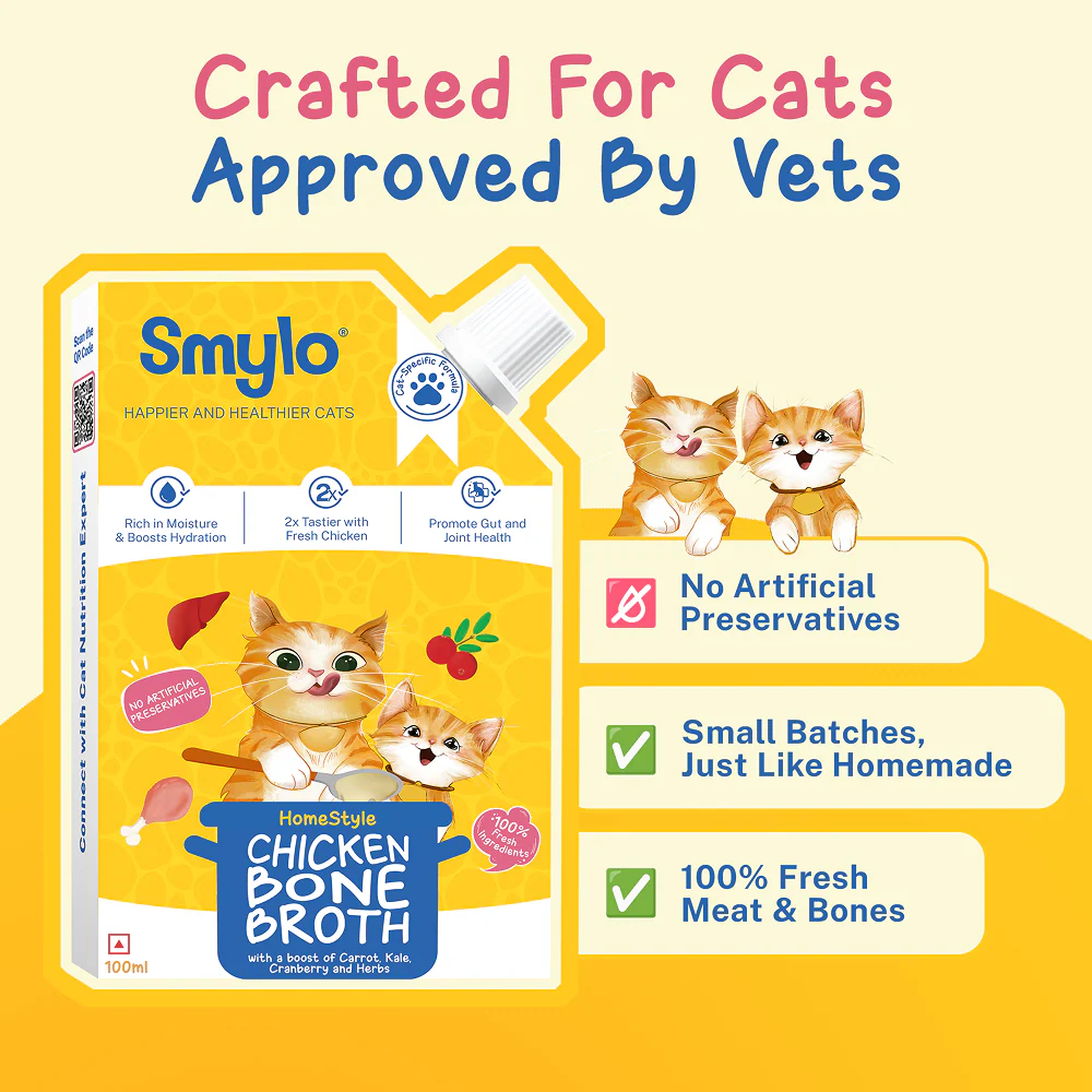 Smylo Hydration Rich Chicken with Carrot, Kale and Cranberry Bone Broth for Cats