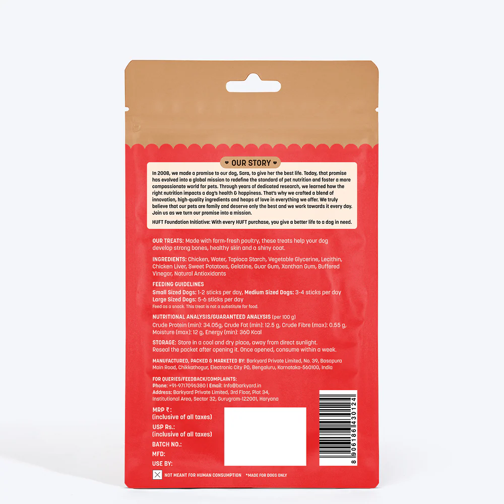 HUFT Yum Nums Real Chicken Soft & Chewy Sticks Dog Treats