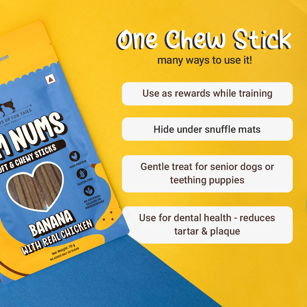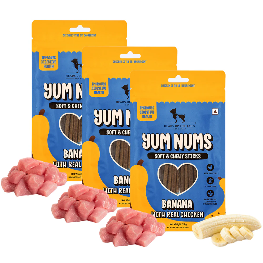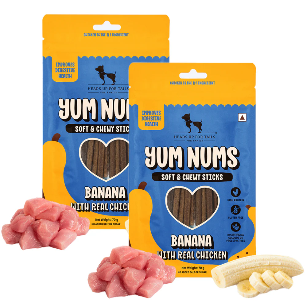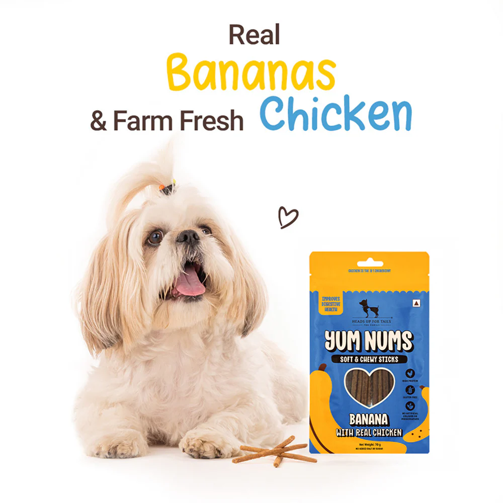 HUFT Yum Nums Banana with Real Chicken Soft & Chewy Sticks Dog Treats