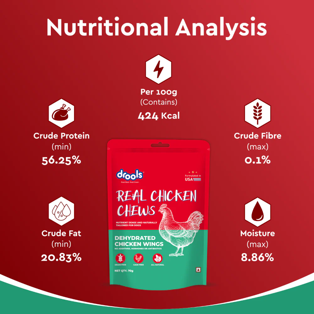 Drools Dehydrated Real Chicken Wing Chews Treat for Dogs