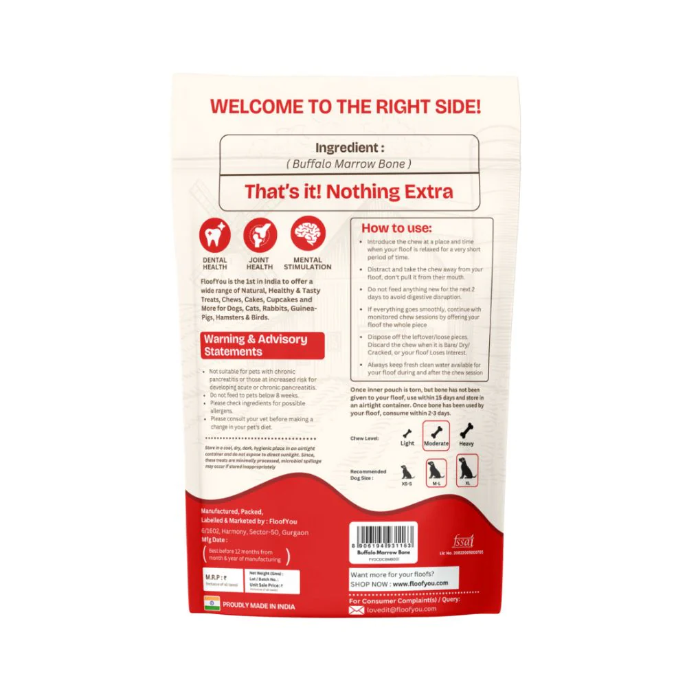 FloofYou Air Dried Buffalo Marrow Bone Chew Dog Treats