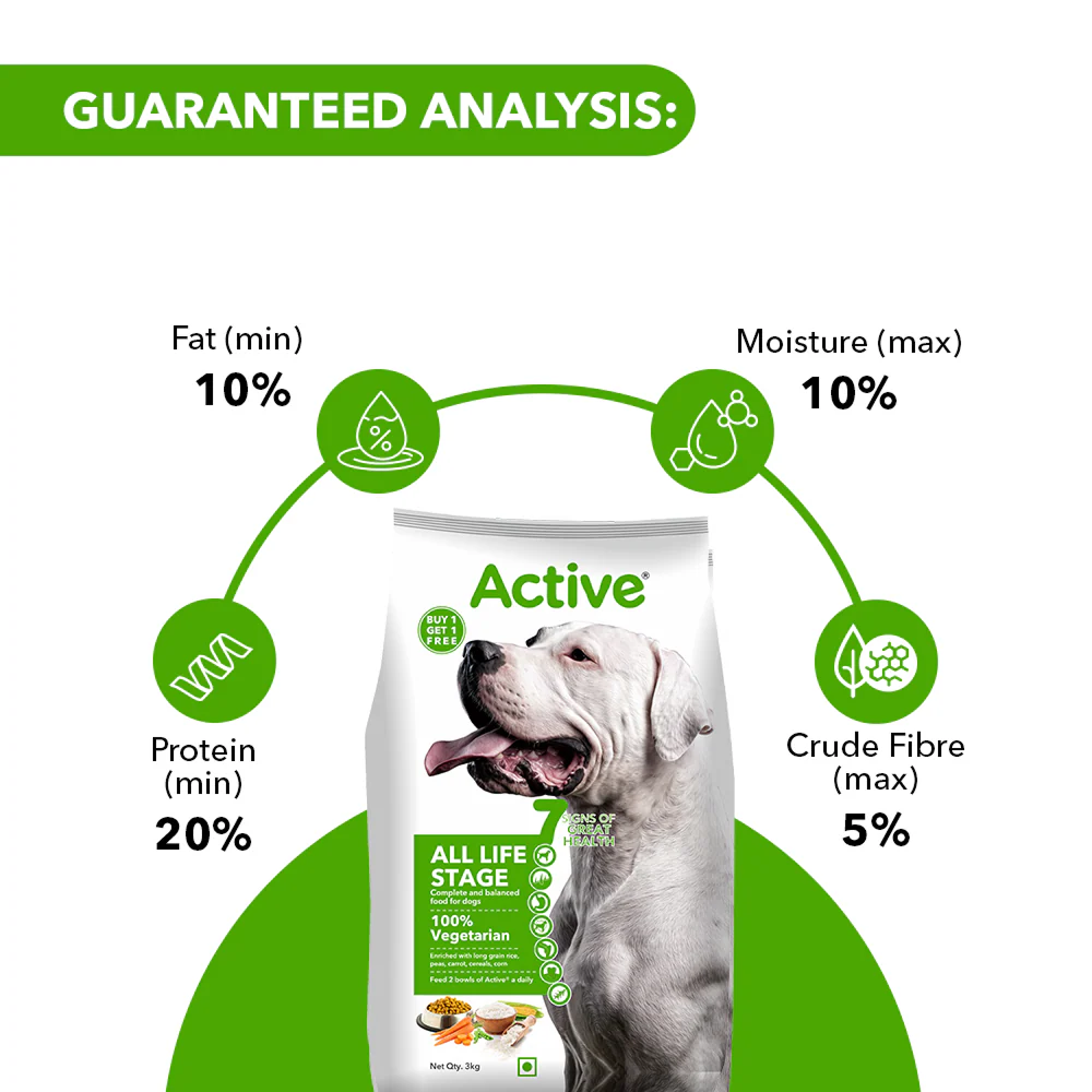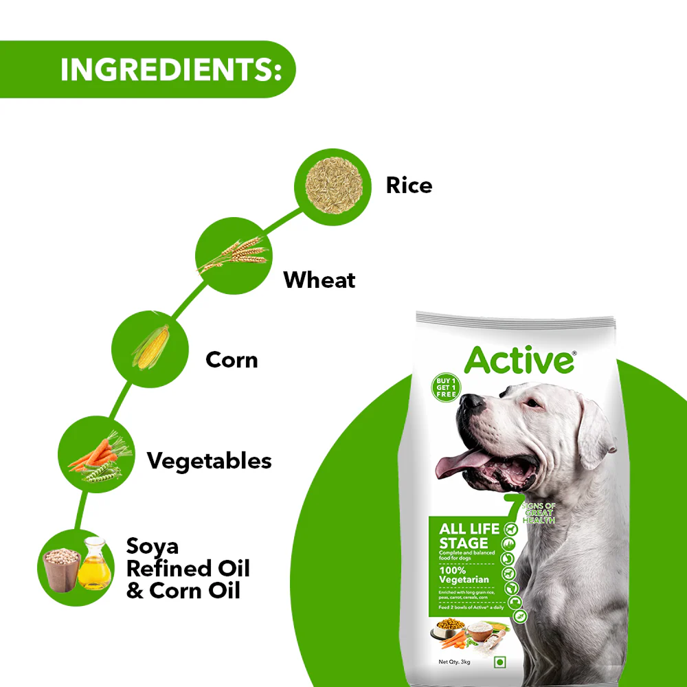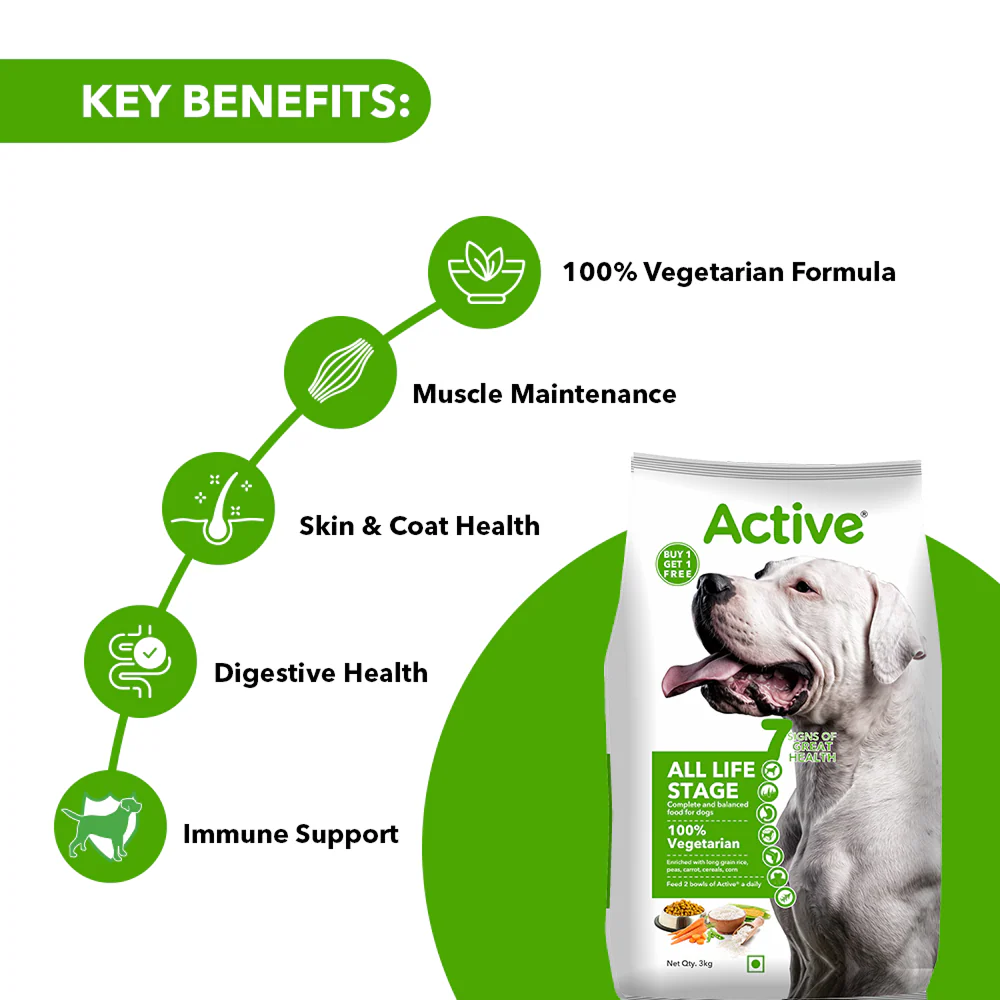 Active All Breed 100% Veg Dog Dry Food (Buy 1 Get 1)