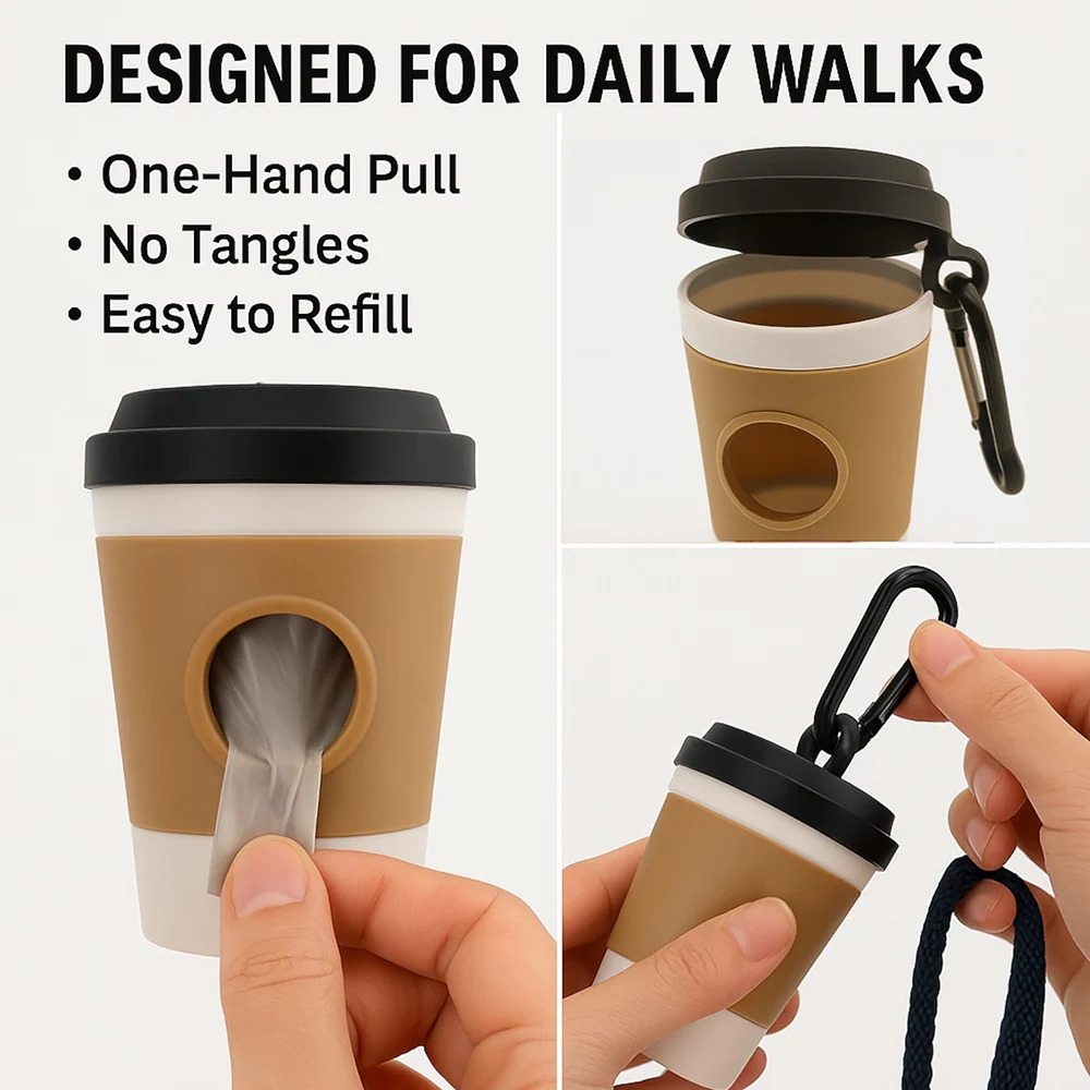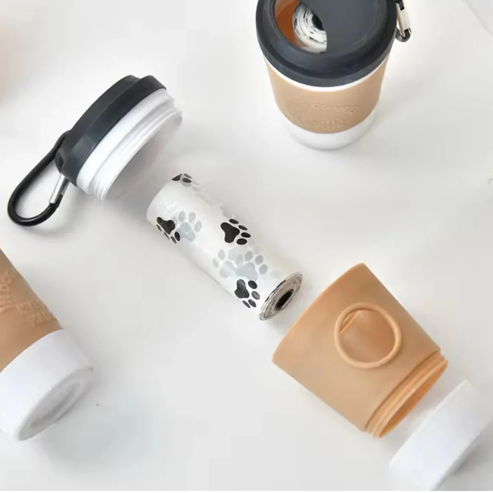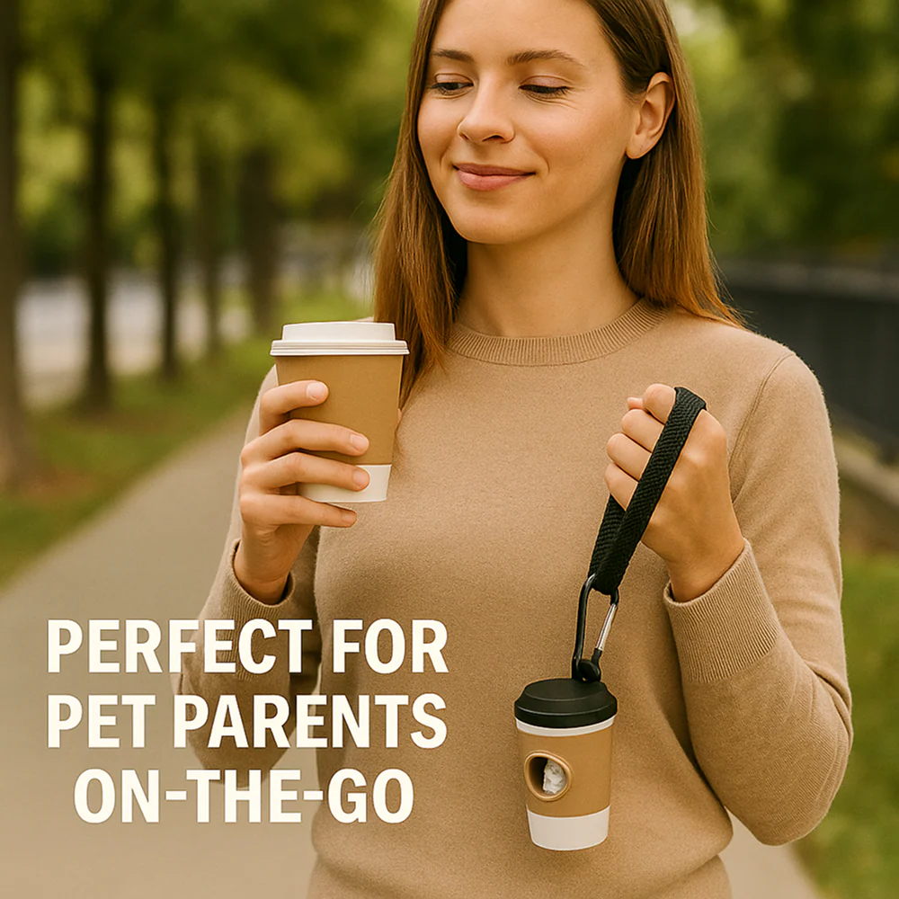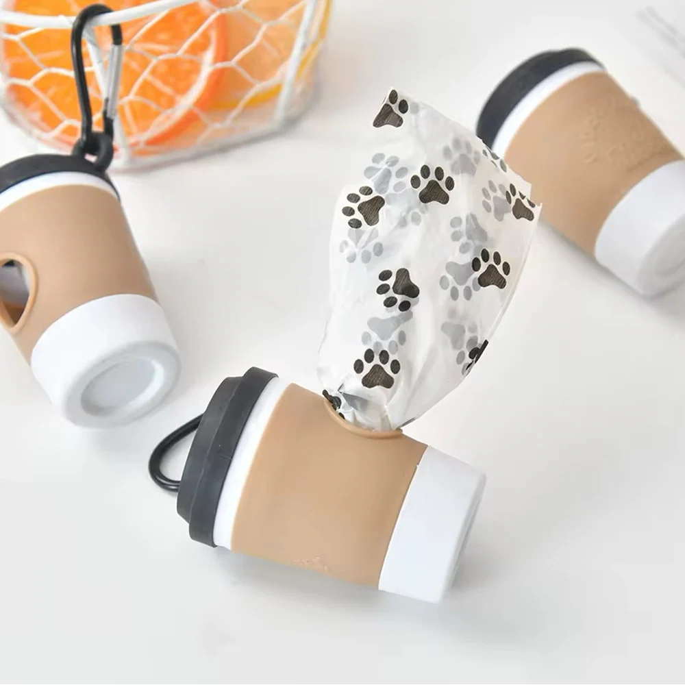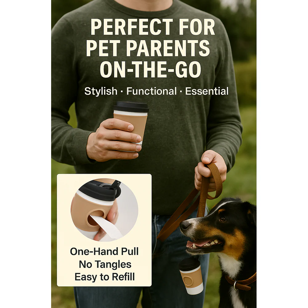 Talking Dog Club Coffee Cup Poop Bag Holder for Dogs and Cats (Brown/White)