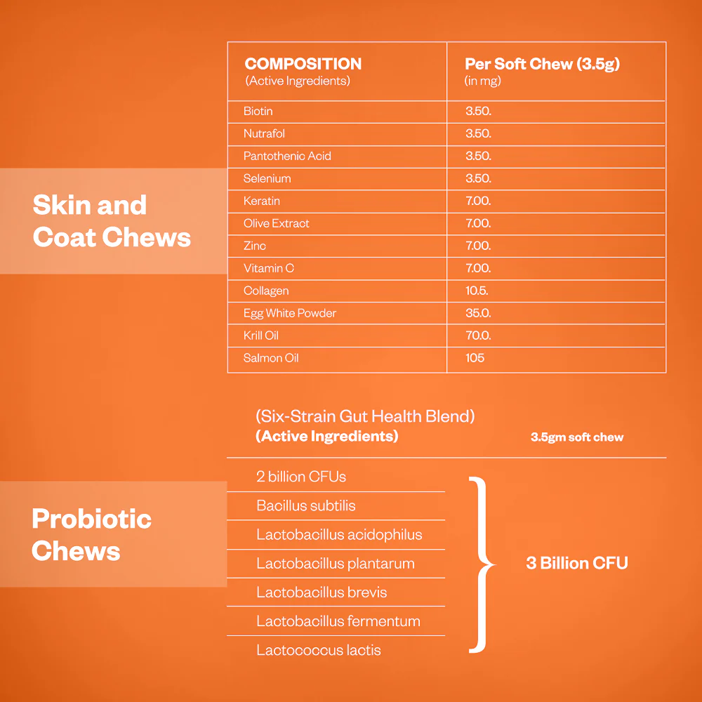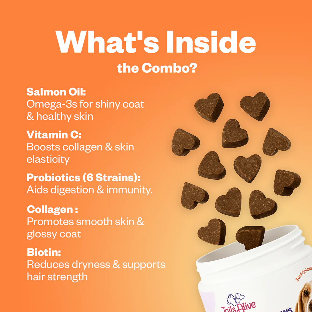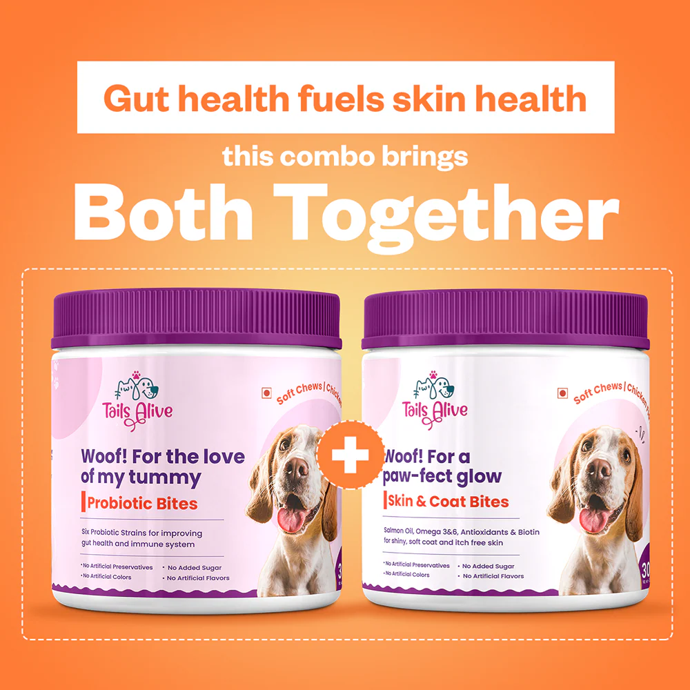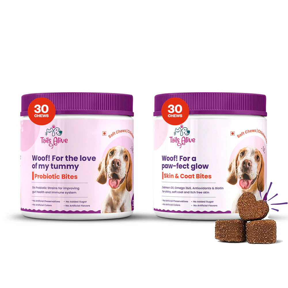 TailsAlive Probiotic Chicken Flavor and Skin & Coat Soft Chews Supplements for Dogs