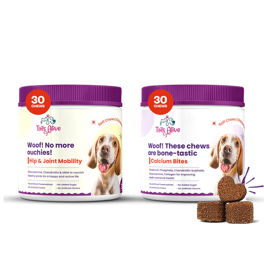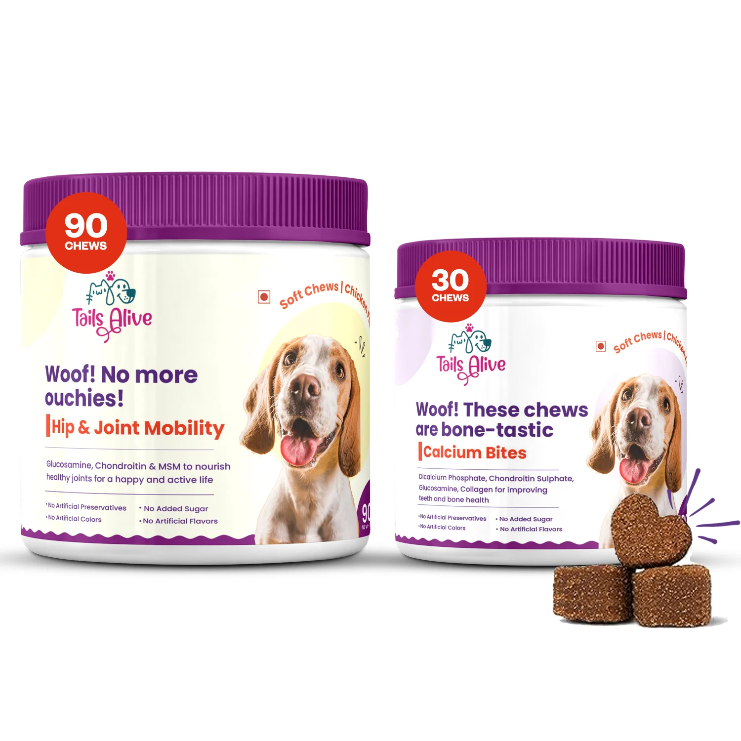 TailsAlive Hip & Joint and Calcium Chicken Flavor Soft Chews Supplements Combo for Dogs