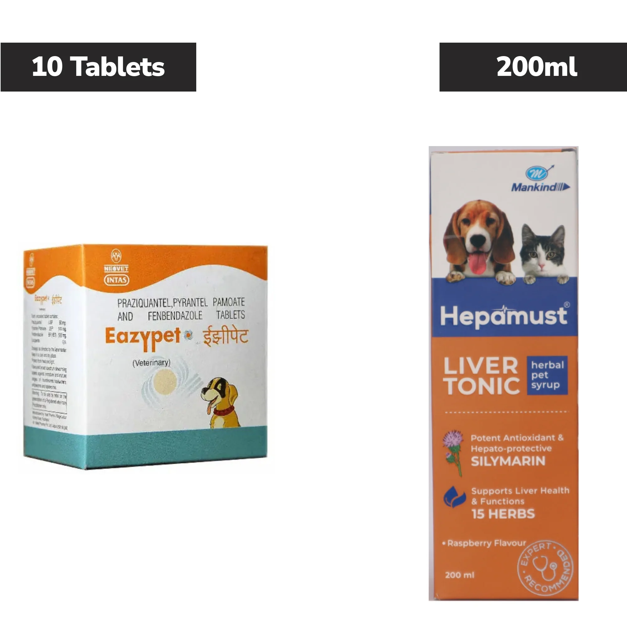 Intas Eazypet Deworming Tablet (10 Tabs) and Mankind Hepamust Liver Tonic 200ml for Dogs & Cats Combo