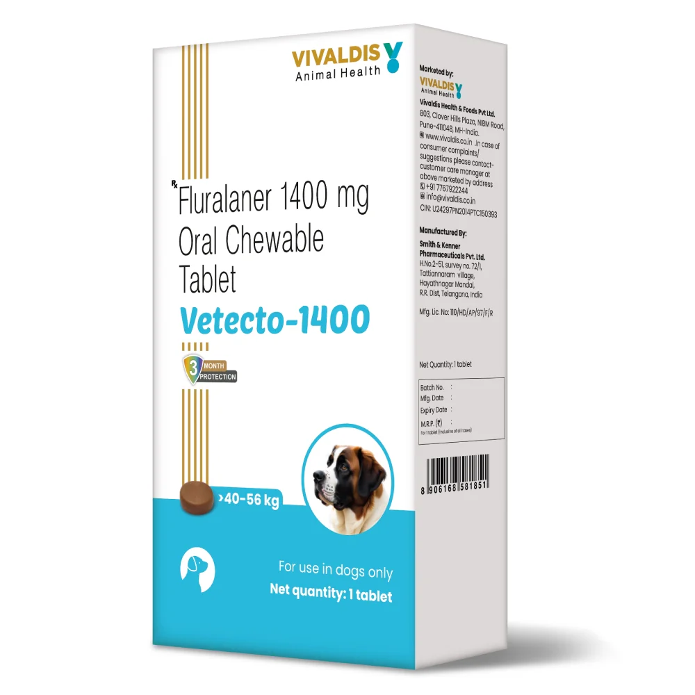Vivaldis Vetecto 1400 (Fluralaner) chewable Tick & Flea tablet for Dogs (40 to 56 kg)