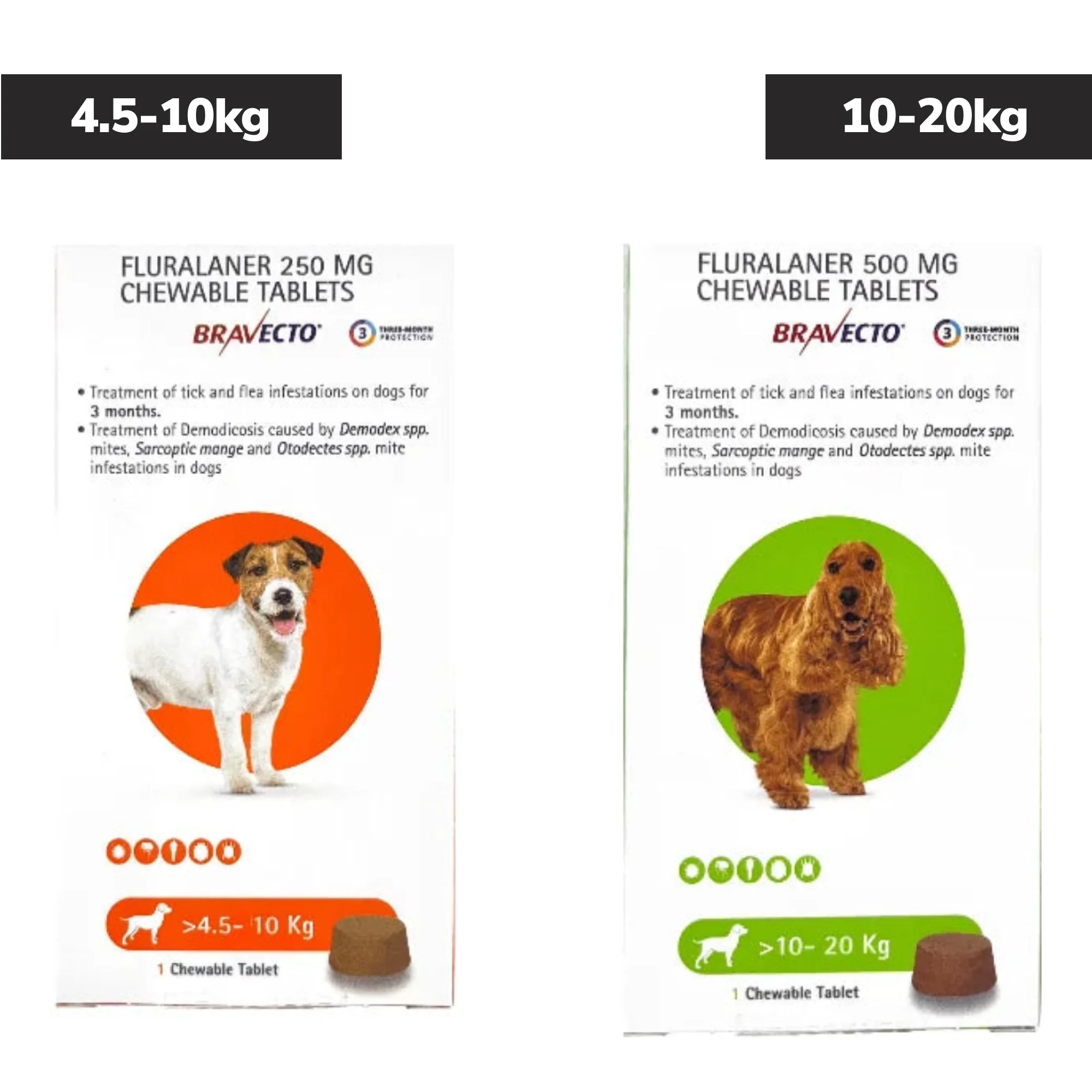 MSD Bravecto Tick & Flea Control Tablet for Dogs 4.5 to 10 kg (1 Tablet) and 10 to 20 kg (1 Tablet) Combo