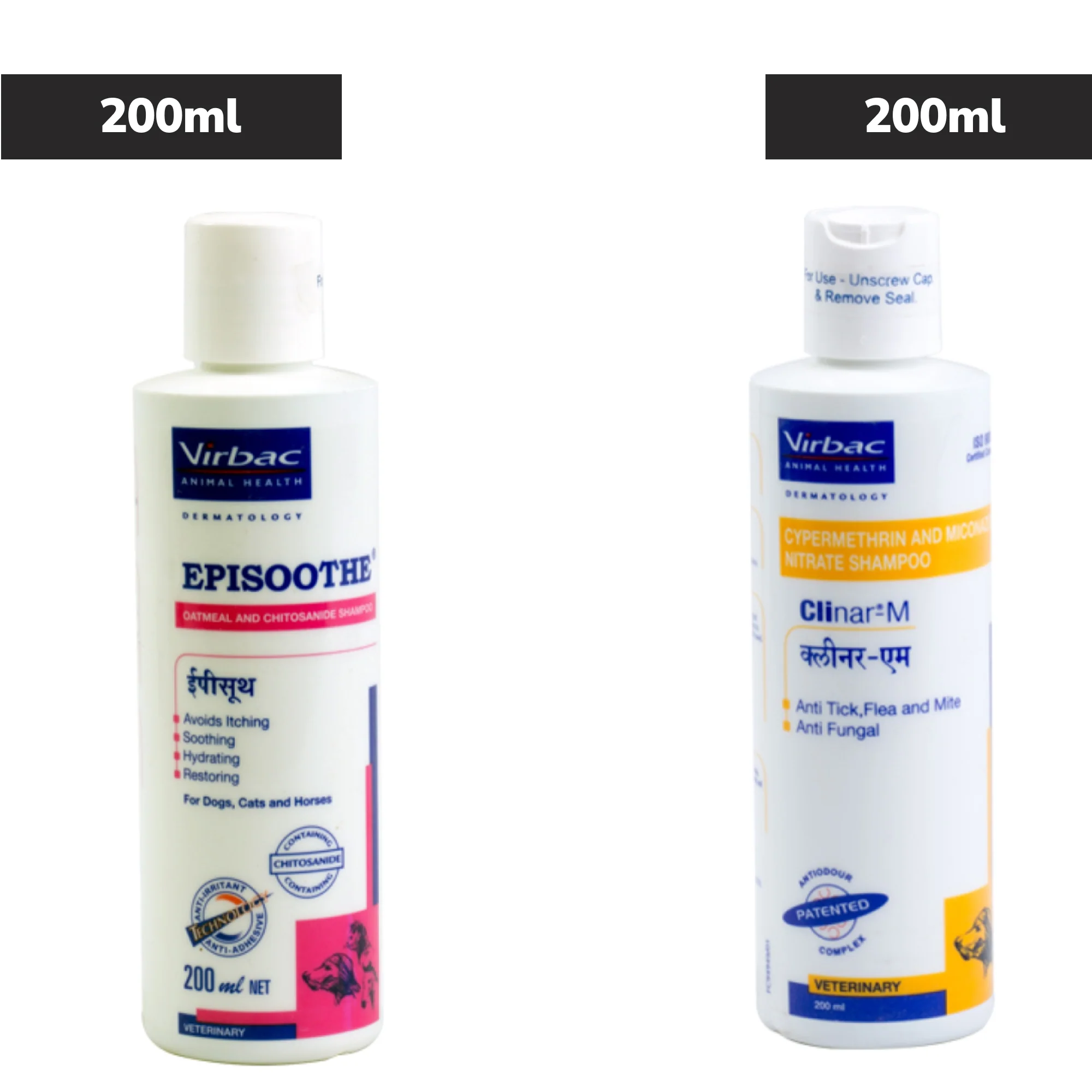 Virbac Episoothe Oatmeal Shampoo 200ml and Clinar M Anti-Tick & Flea Shampoo 200ml for Dogs Combo