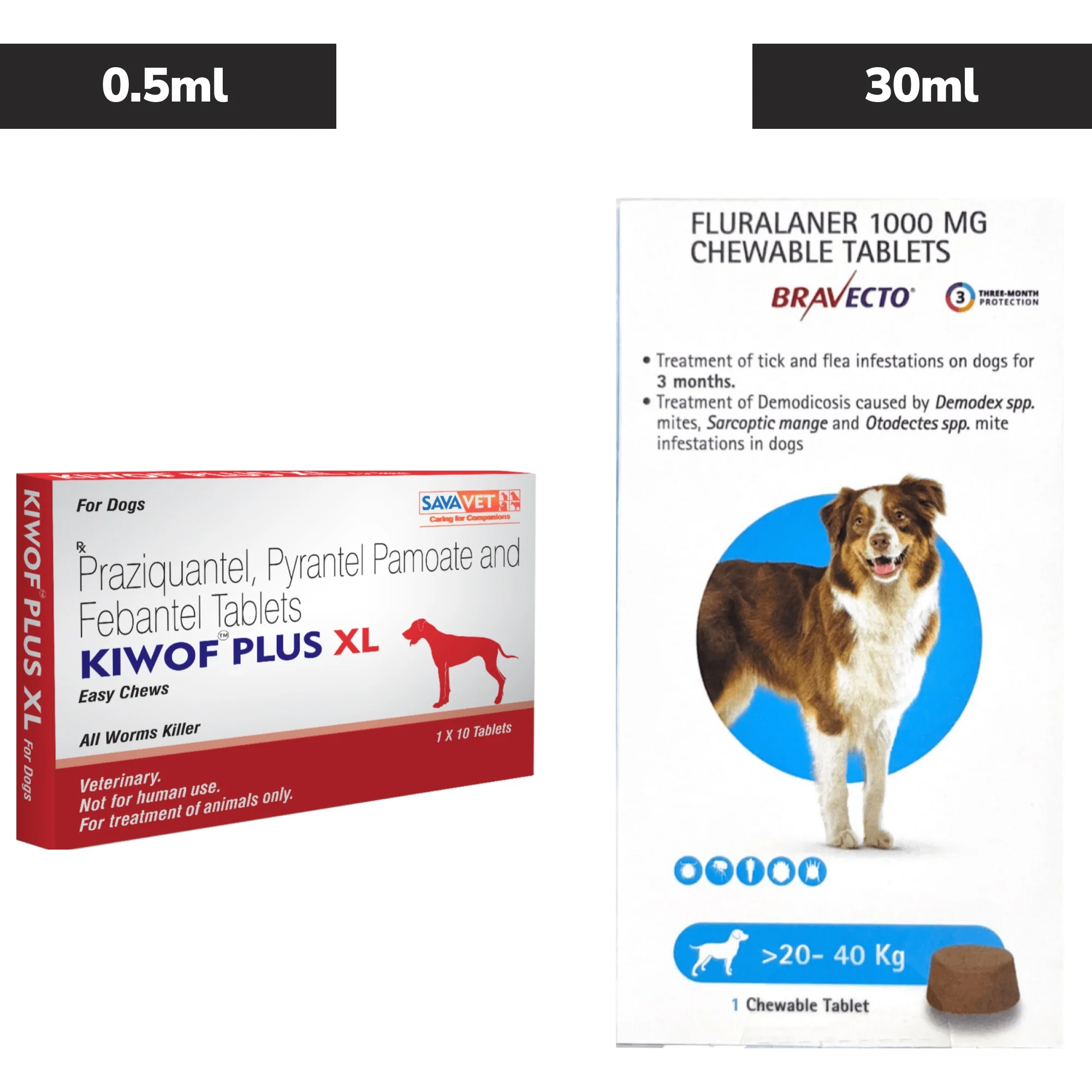 Savavet Kiwof Plus XL Deworming Tablet (10 tablets) and MSD Animal Health Bravecto (Fluralaner) Tick & Flea Control Tablet (1 tablet) (20 to 40 kg) for Dogs Combo