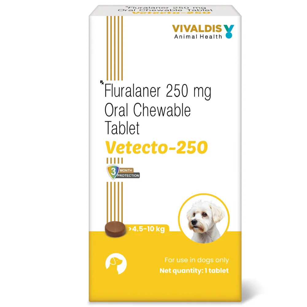 Vivaldis Vetecto 250 (Fluralaner) chewable Tick & Flea tablet for Dogs (4.5 to 10 kg)