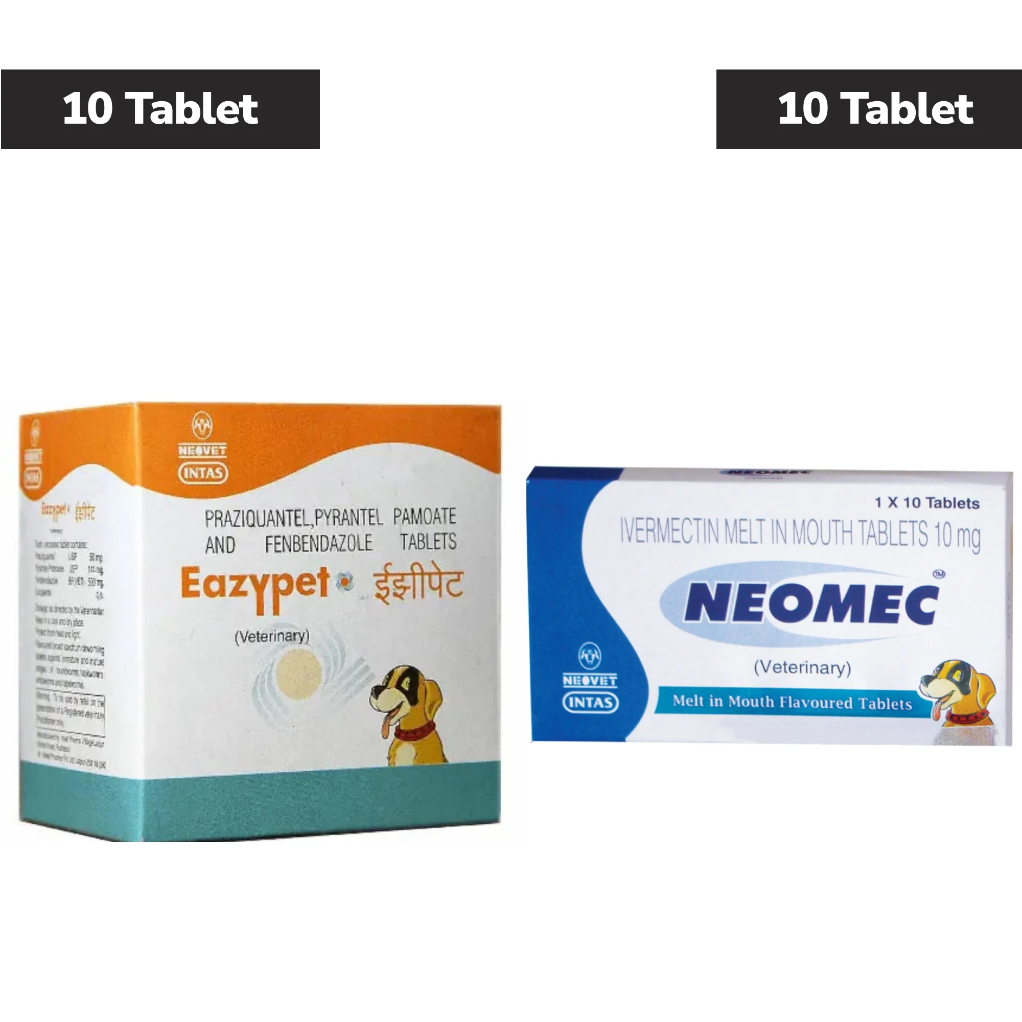Intas Eazypet Deworming Tablet (10 Tabs) and Neomec Ivermectin Tablets 10mg (10 Tabs) for Dogs Combo