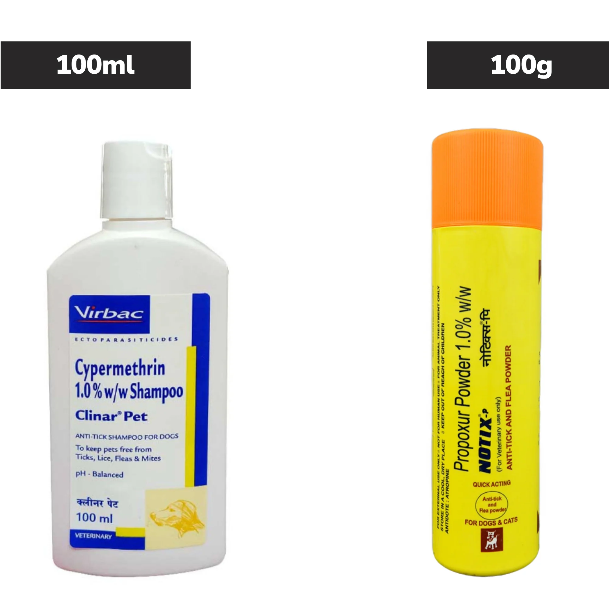 Petcare Notix Tick & Flea Control Powder 100g and Clinar Pet Anti-Tick & Flea Shampoo 100ml for Dogs Combo