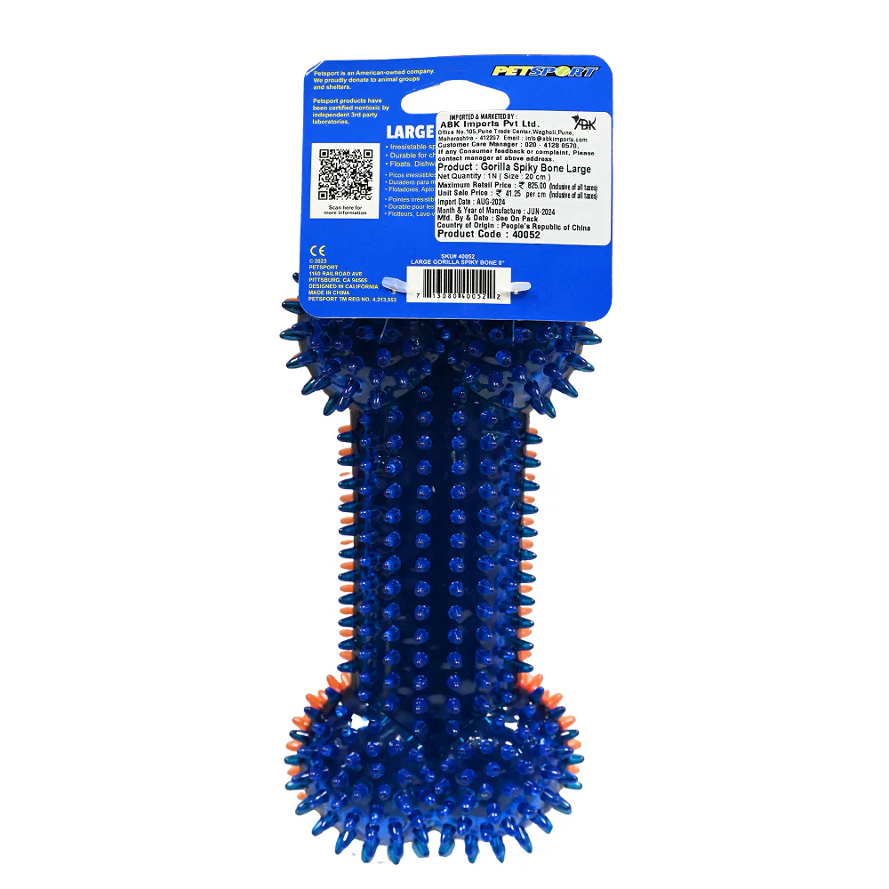 Petsport Gorilla Spiky Bone Toy for Dogs (Blue & Red)