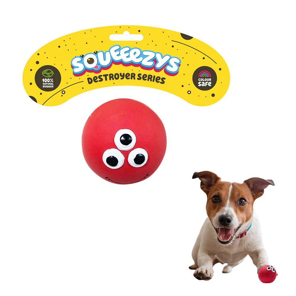 Squeeezys Latex Monster Ball Chew Toy for Dogs (Red)