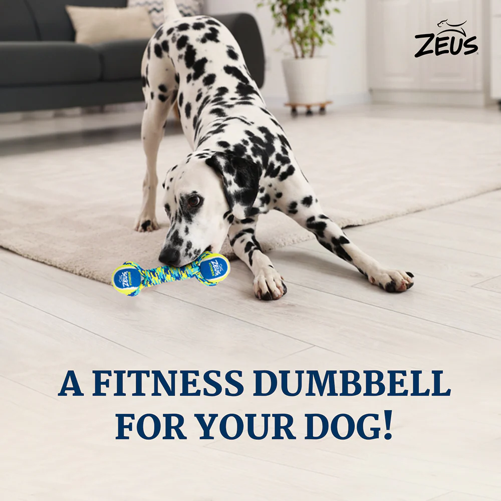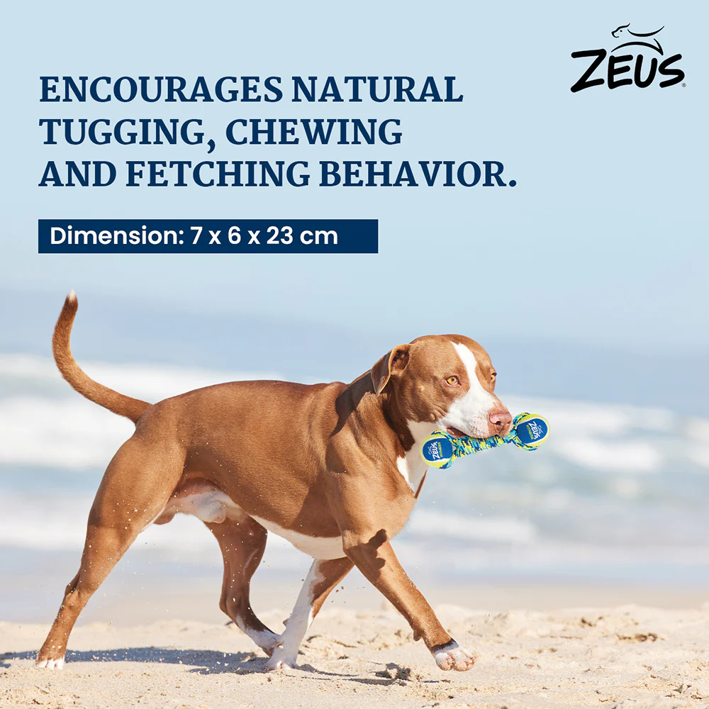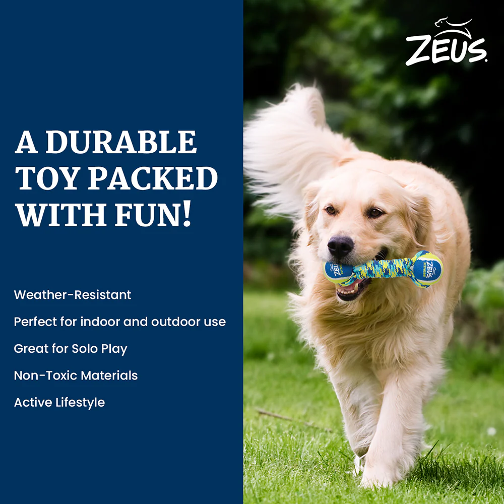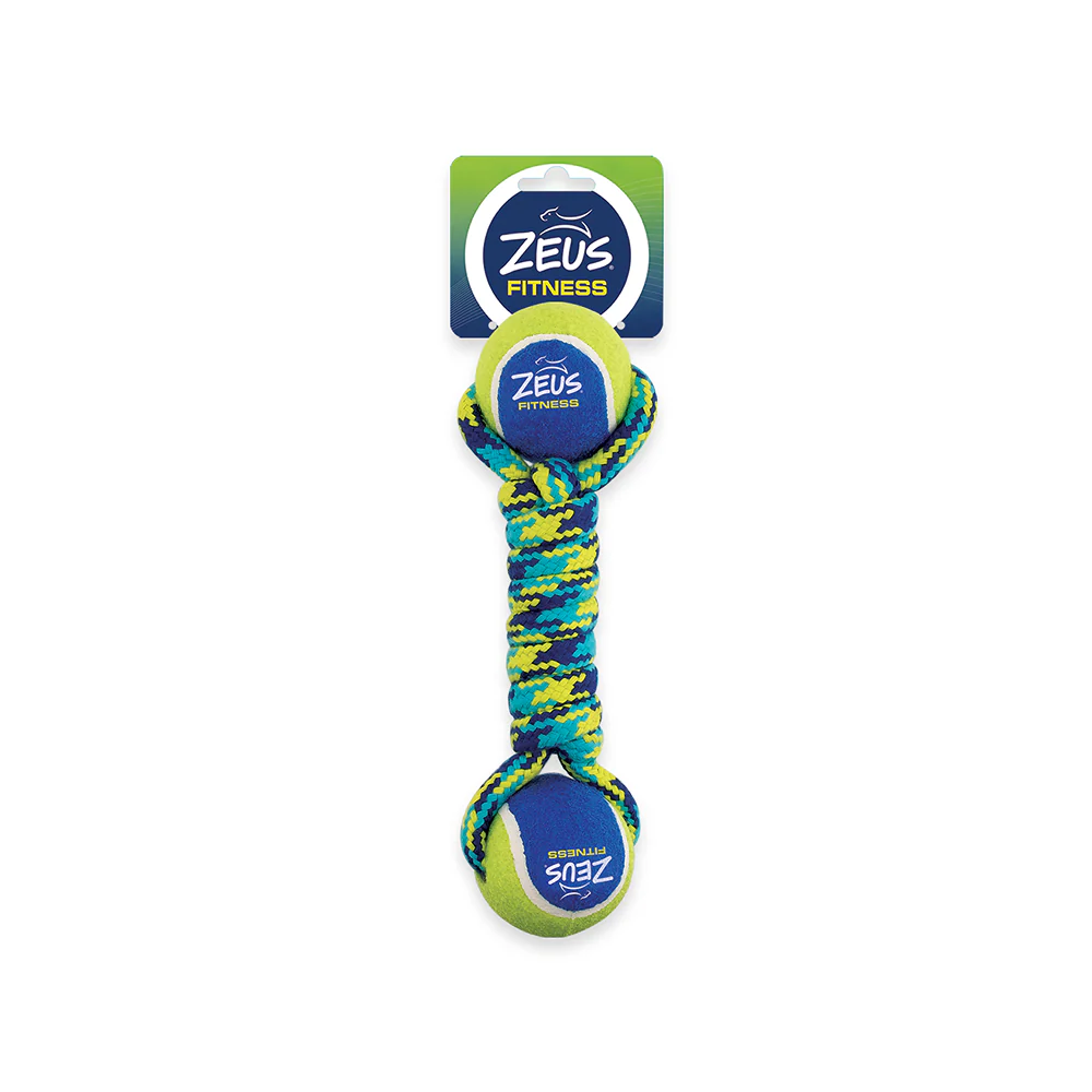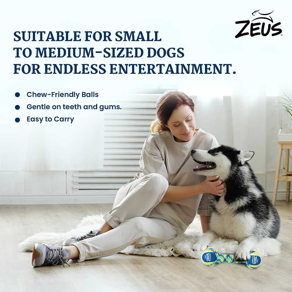 Zeus Double Tennis Ball Rope Dumbbell Toy for Dogs (Blue)