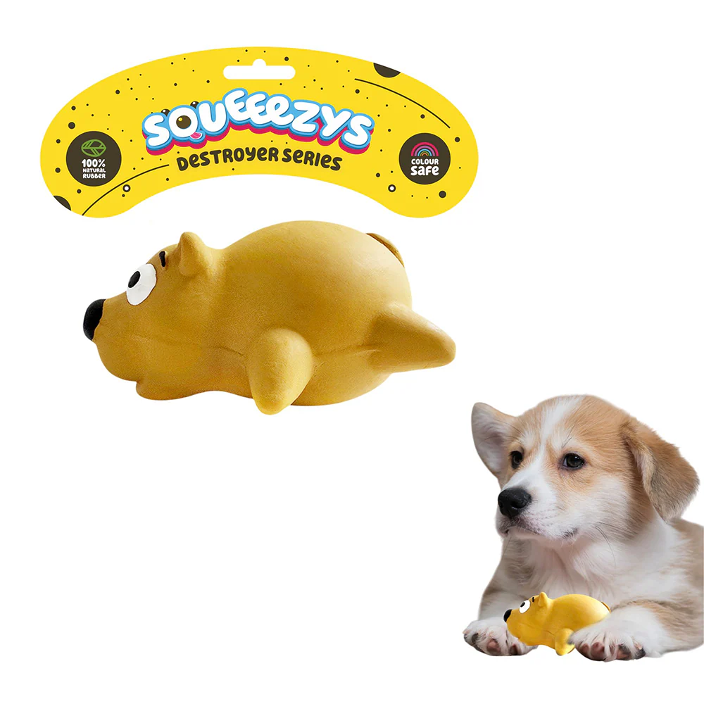 Squeeezys Latex Little Bear Squeaky Chew Toy for Dogs (Brown)