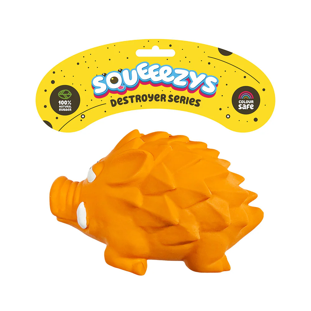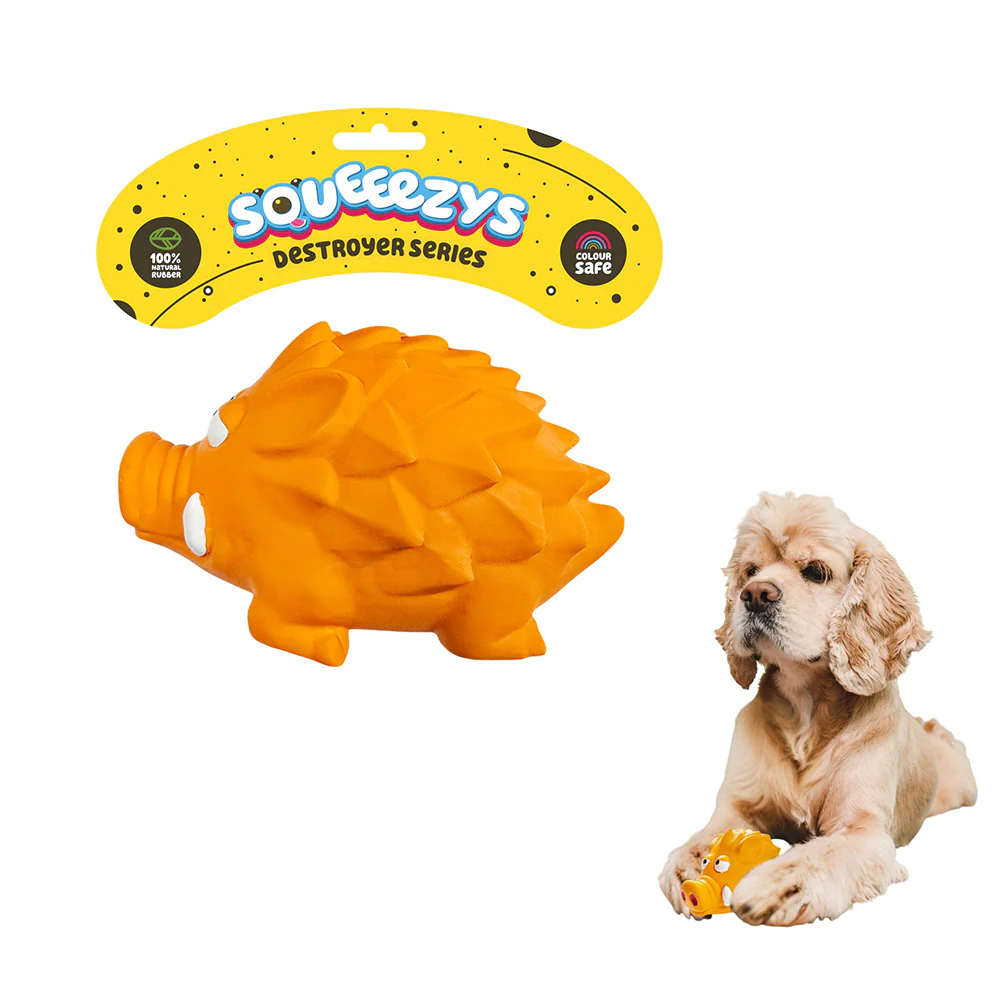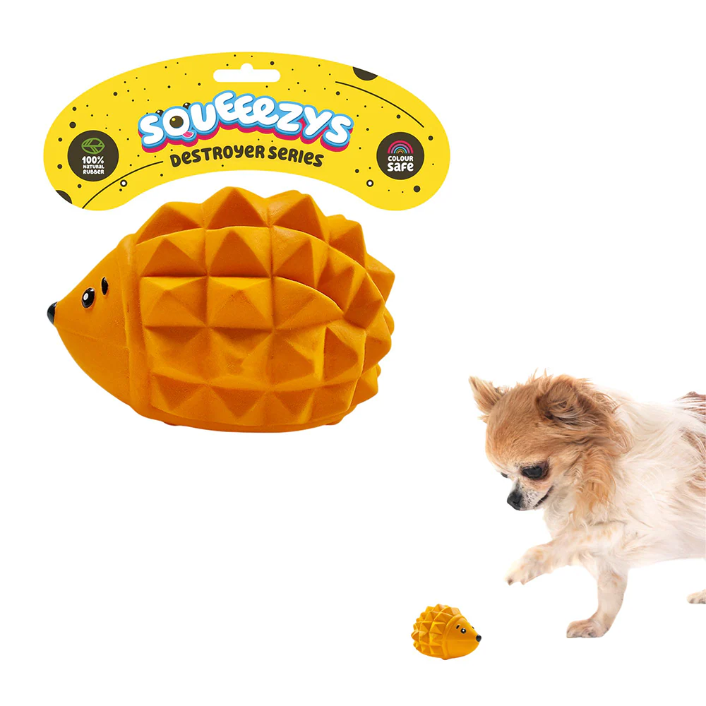 Squeeezys Latex Hedgehog Squeaky Chew Toy for Dogs (Orange)