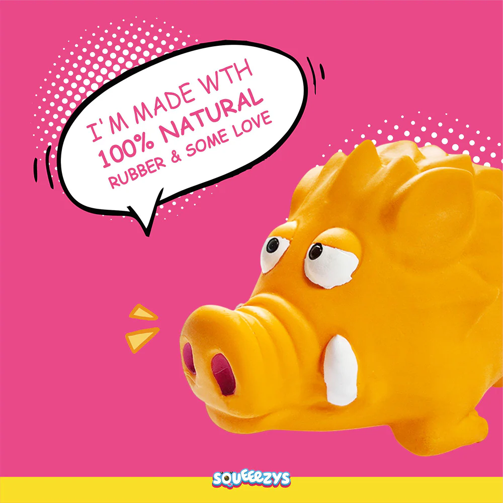 Squeeezys Latex Warthog Squeaky Chew Toy for Dogs (Orange)