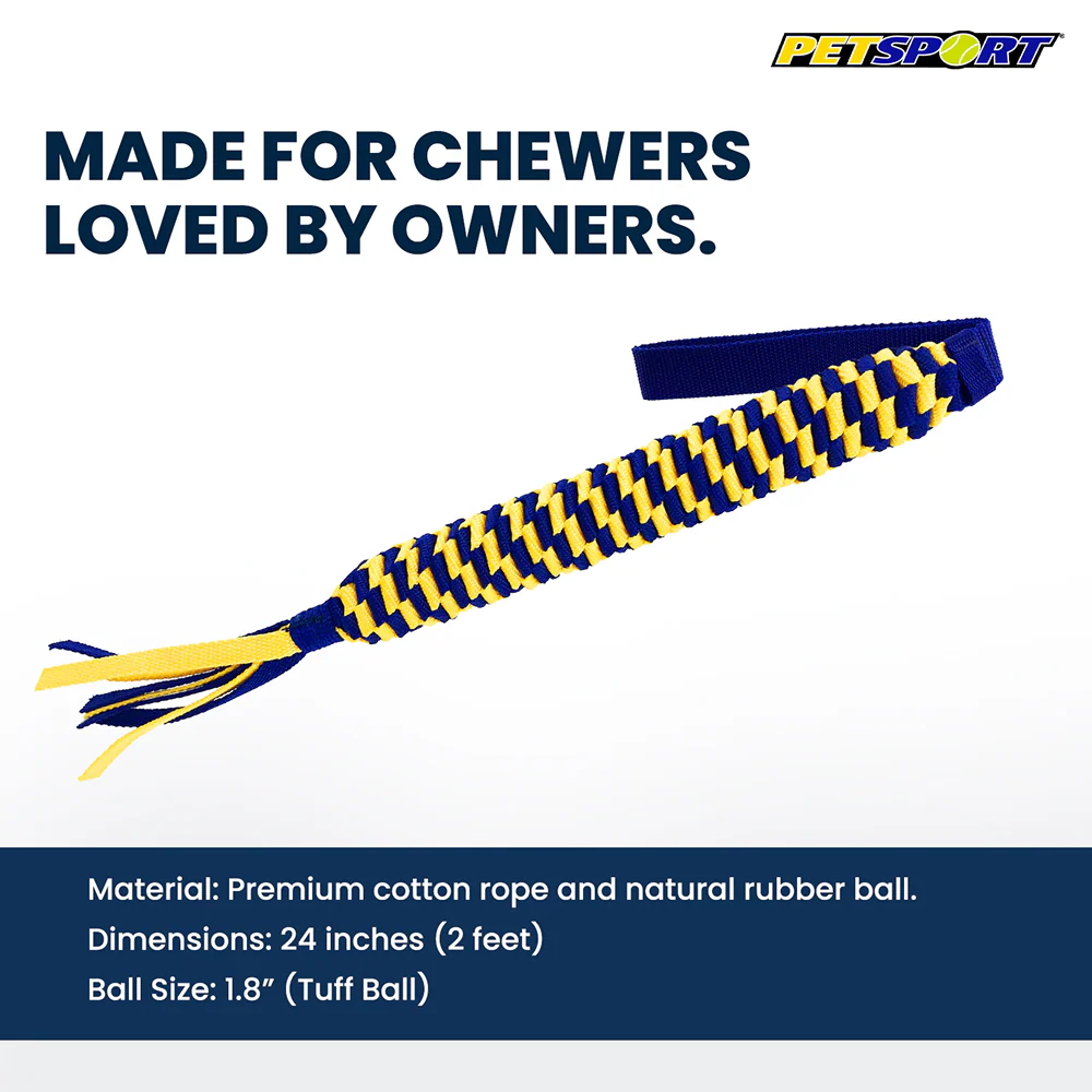 Zeus Rope Ball Tug with Single Hand Loops Toy for Dogs (Yellow)