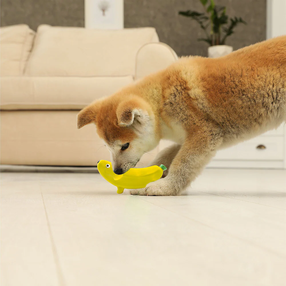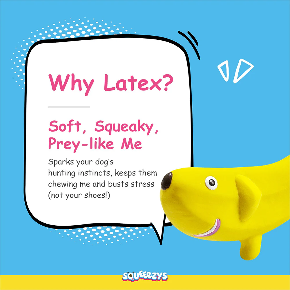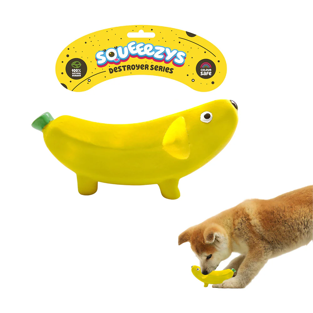 Squeeezys Latex banana Squeaky Chew Toy for Dogs (Yellow)