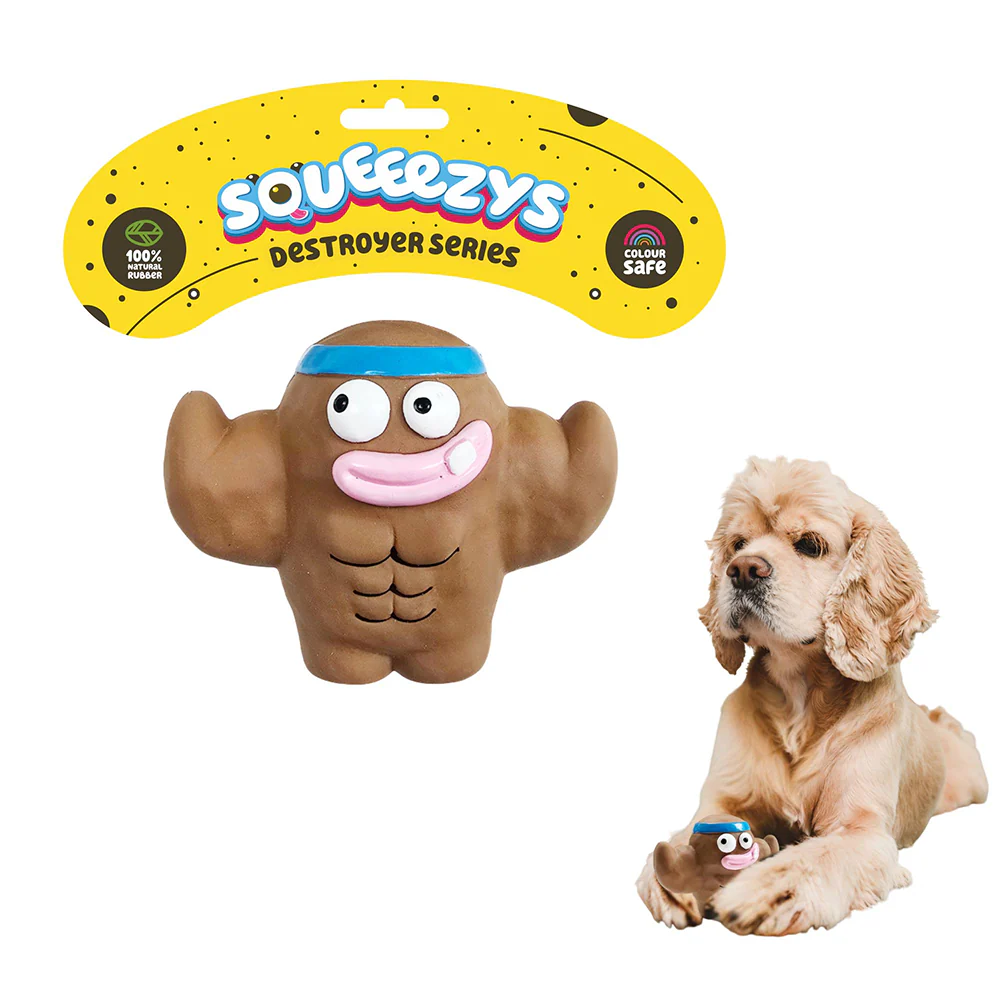 Squeeezys Latex Monster Brother Squeaky Chew Toy for Dogs (Brown)