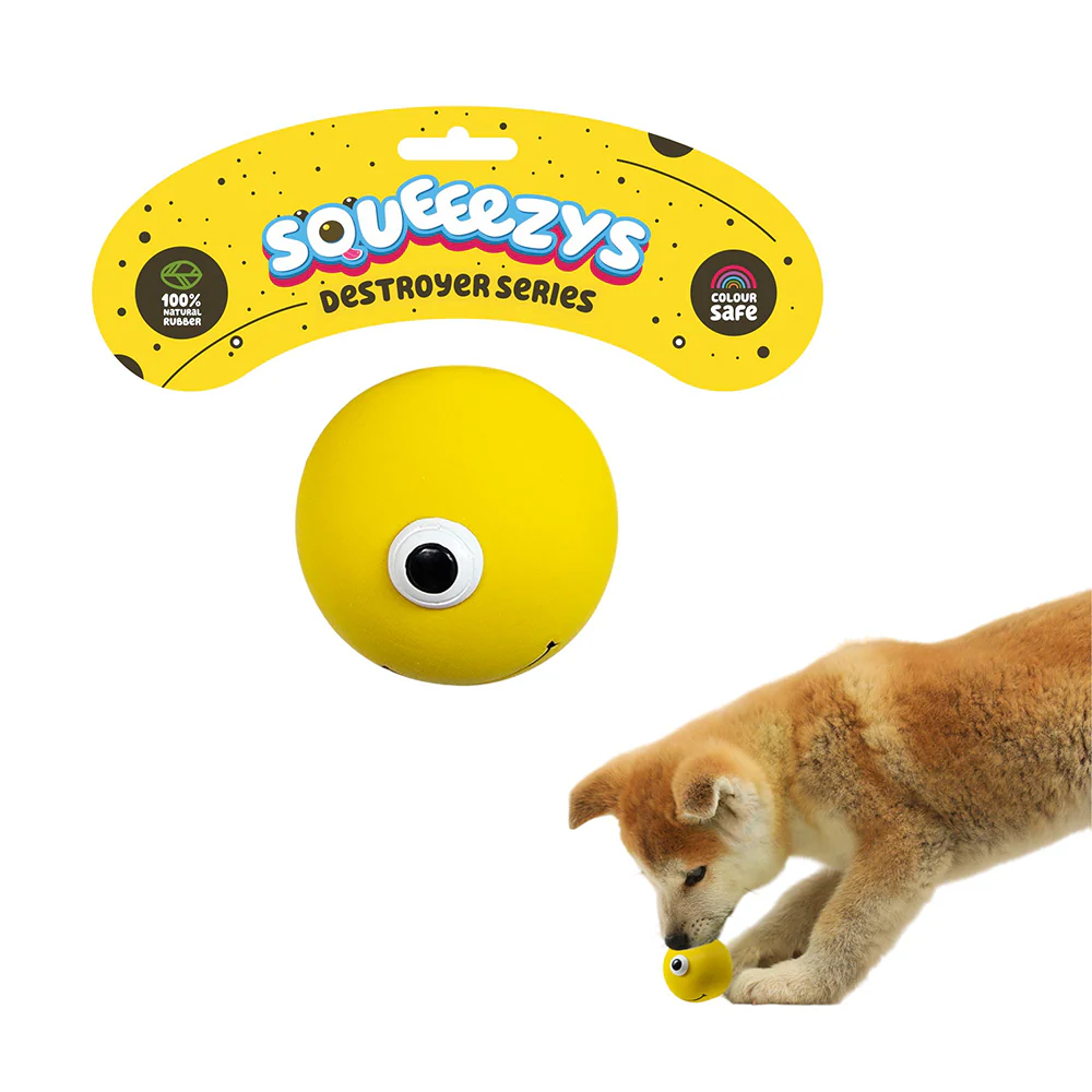 Squeeezys Latex Monster Ball Chew Toy for Dogs (Yellow)
